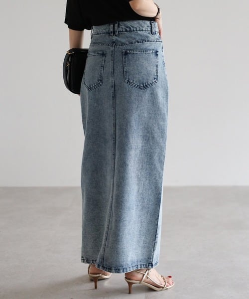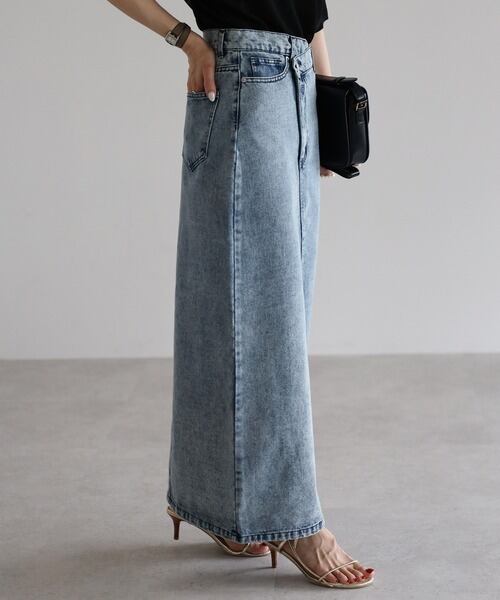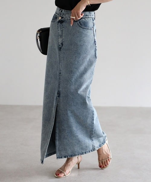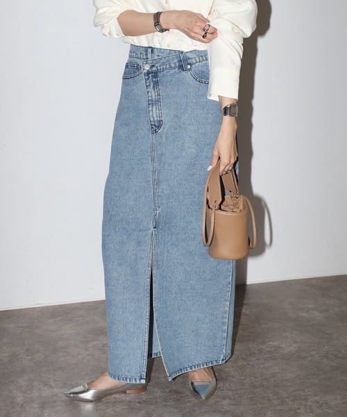 クロスウエストで魅せる、大人のデニムスカート
