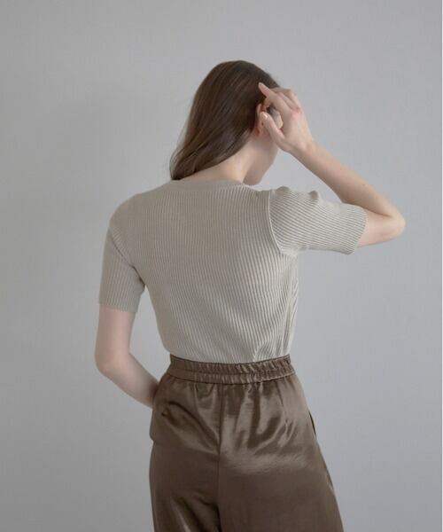 柔らかく伸びる生地が心地よく、タイトすぎず絶妙なシルエットに。