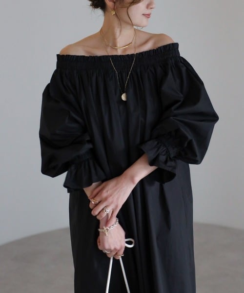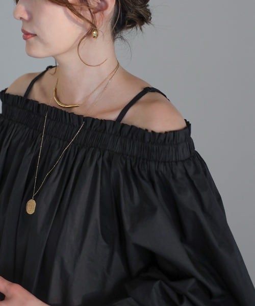 肩紐は取り外し可能で、オフショルとラウンドネックの2WAYで着こなしが楽しめます。