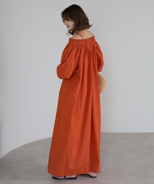 ふんわり広がるギャザーシルエットが魅力のリラクシーなロングワンピース。