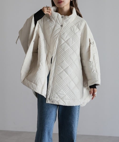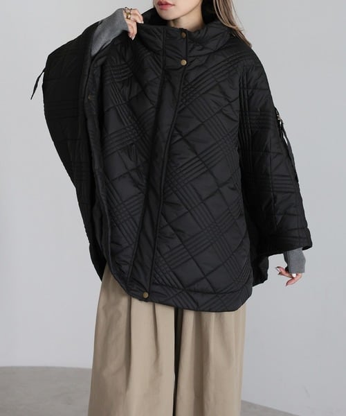 立体感のあるキルティングステッチが目を惹くポンチョコート。