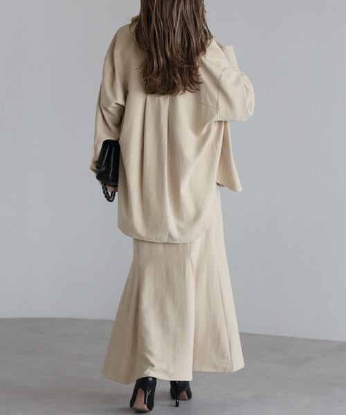 腰回りはタイトに仕上げ、裾に向かって広がるマーメイドシルエットが魅力の一枚です。