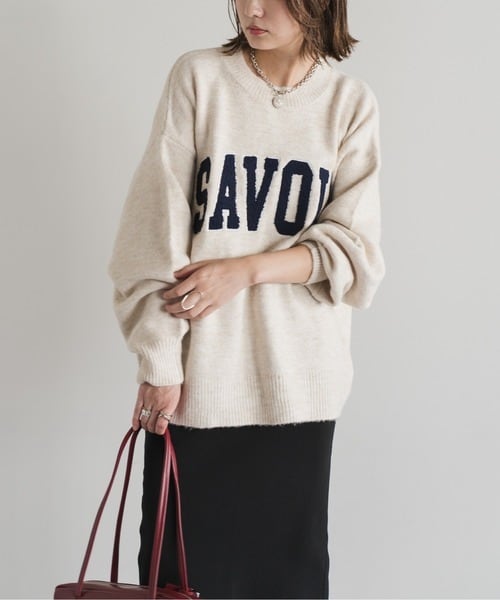 立体ロゴが映える、サガラ刺繍ニットプルオーバー