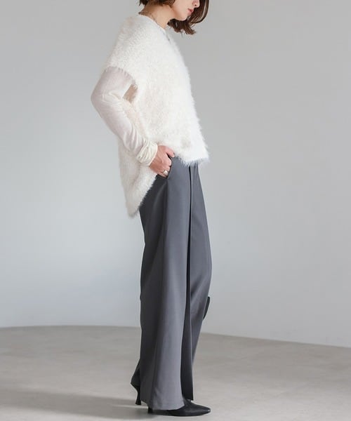 毛足の長いシャギーヤーンを使用した、存在感のあるニットベスト。