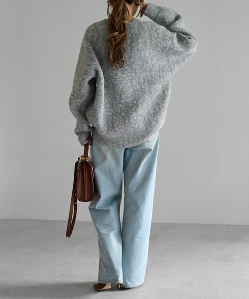 ニュアンス柄のニットとシンプルなストールが調和したセットアイテムです。