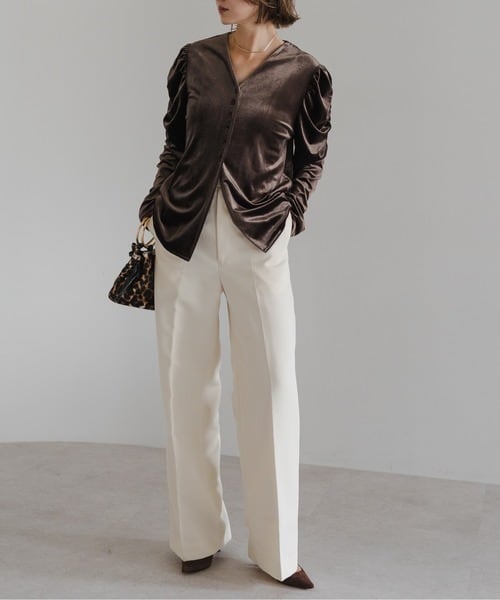 立体ショルダーが際立つクラシックベロアブラウス