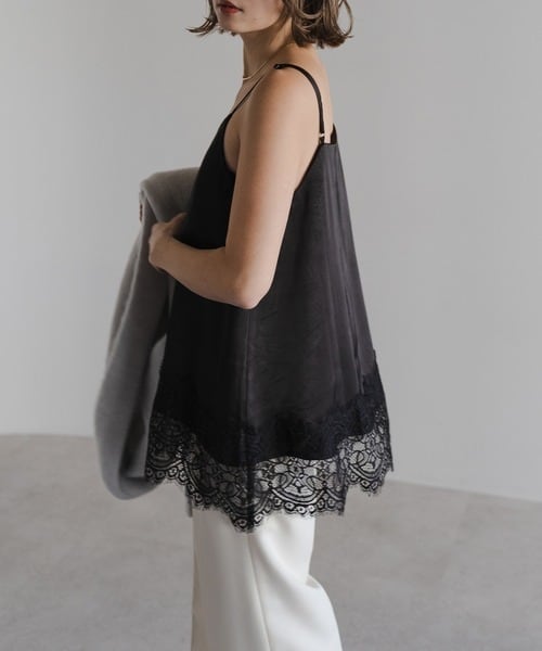 エッジの効いた繊細なレース仕立てのキャミトップ