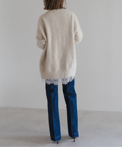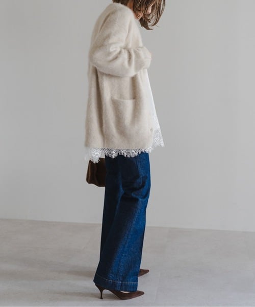 裾には存在感のあるスカラップレースをあしらい、甘さを抑えた大人っぽいバランスに仕上げました。