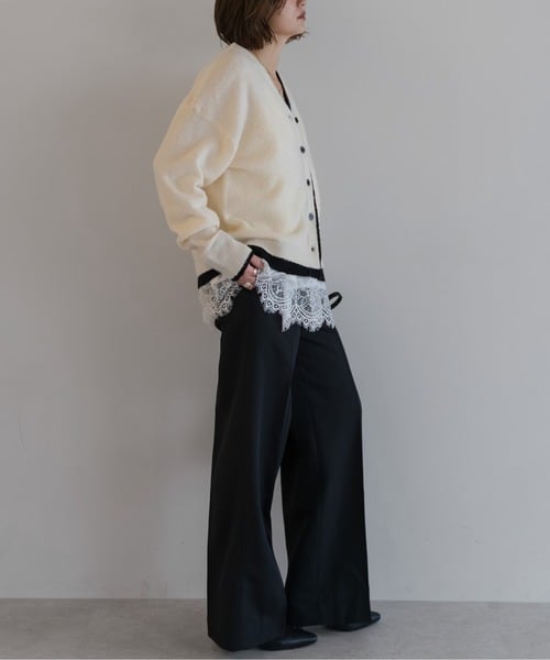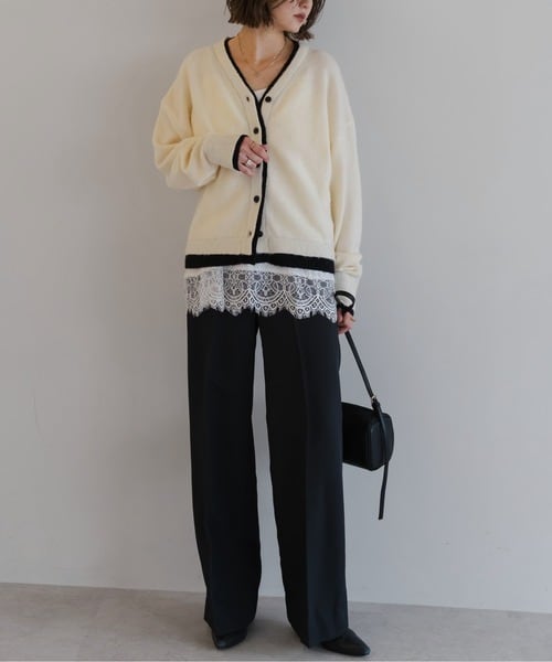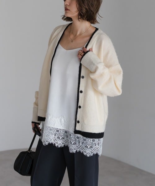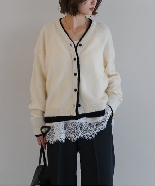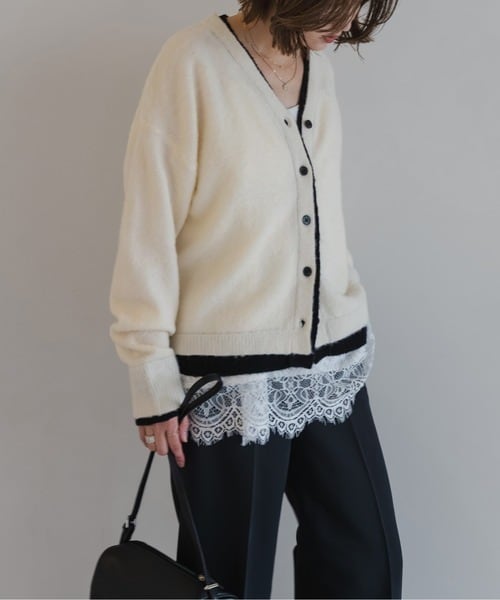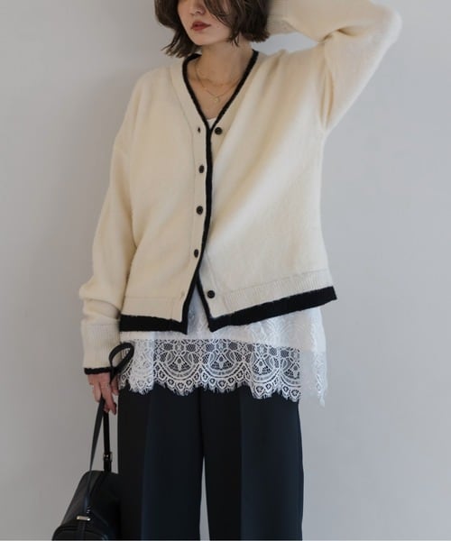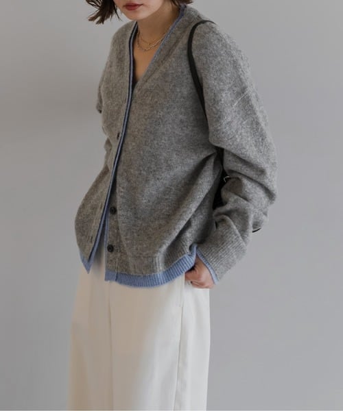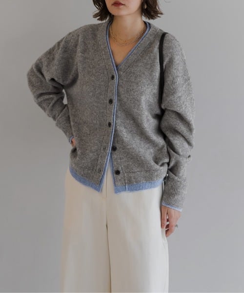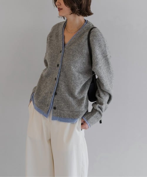 奥行きのある表情を纏う、バイカラー仕立てのレイヤードカーデ