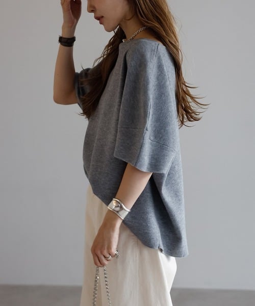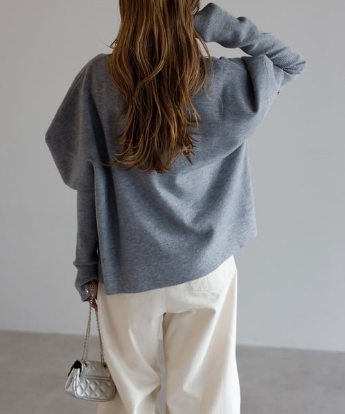 程よい厚みのニット素材を使用し、落ち着いた風合いに仕上げたトップス。