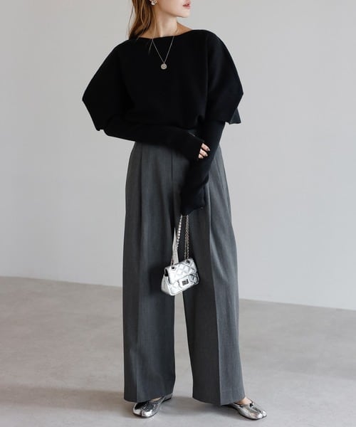 肩まわりに丸みを持たせた構築的なスリーブが、女性らしさにシャープな印象を添えます。