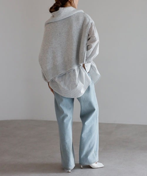 身体のラインを拾いにくいゆとりのあるサイズ設計が、リラックスした大人の雰囲気に。