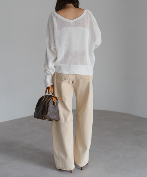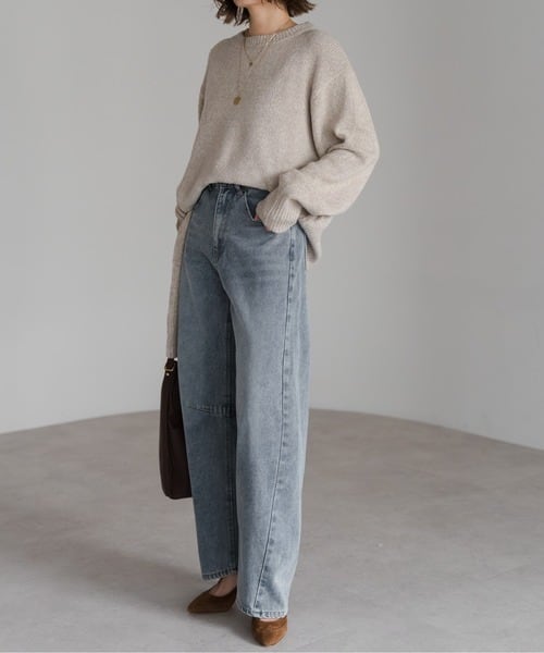 膝下にかけて自然なカーブを描き、デニムに柔らかな印象を与えます。