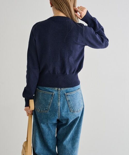 程よい表面感のある編み地で、シンプルながら奥行きのある印象のニットトップス。