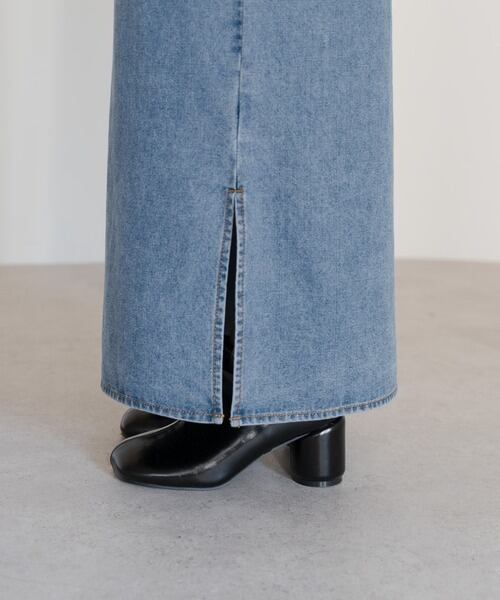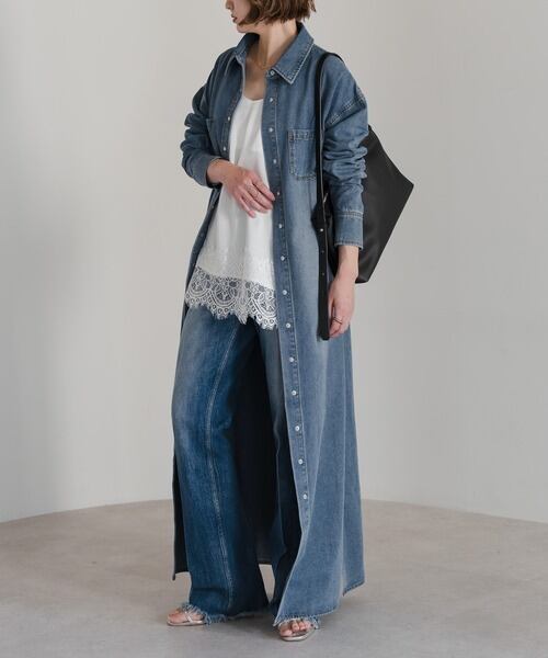 程よく落ち感のあるデニムで、縦のラインをすっきりと引き立てる一枚。