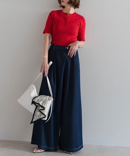 ※同素材のドットボタンデニムオーバートップスと合わせていただくと、セットアップコーデがお楽しみいただけます。
