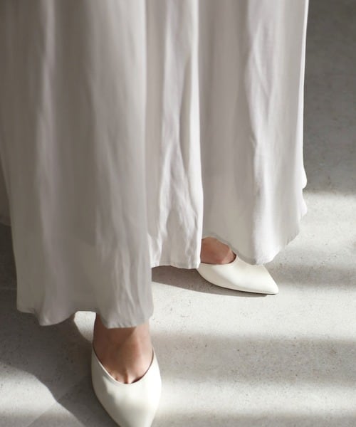 動くたびに揺れるフレアシルエットは、柔らかな雰囲気をプラス。