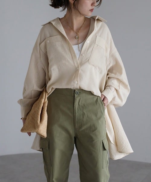 リネンライクなナチュラルな風合いが魅力のロングスリーブシャツ。