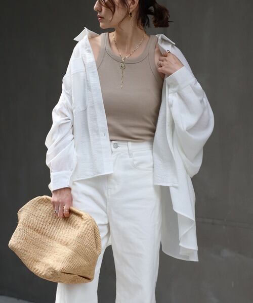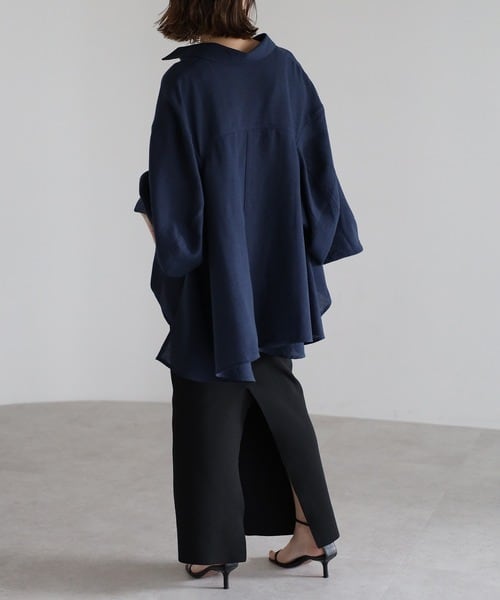 前後差のある裾と深めのサイドスリットで動きのあるシルエットに。