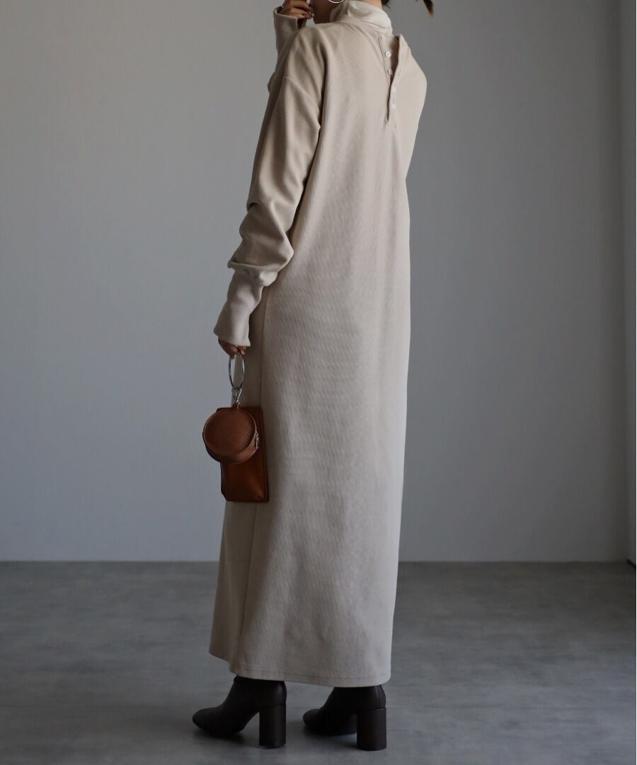 ショート、ロング問わずアウターも羽織って頂ける万能ワンピース。