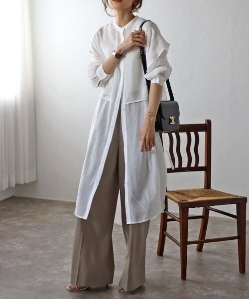 深めのサイドスリットで抜け感もあり、パンツとのコーディネートがオススメです。