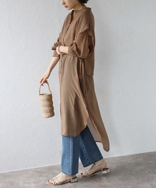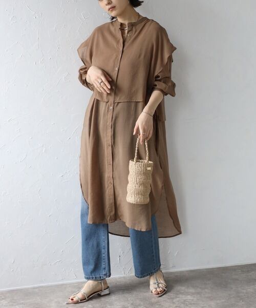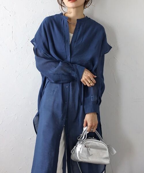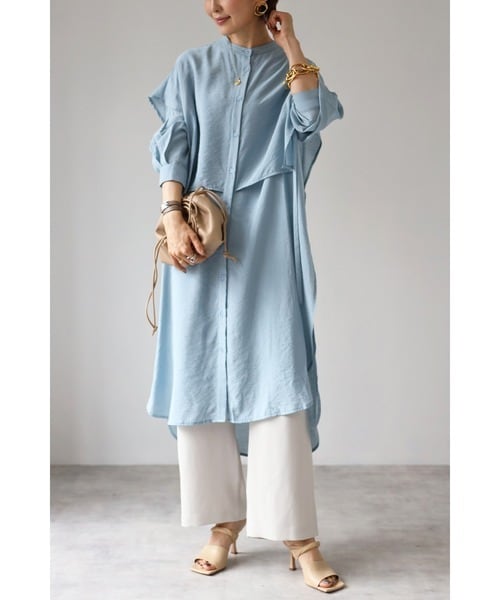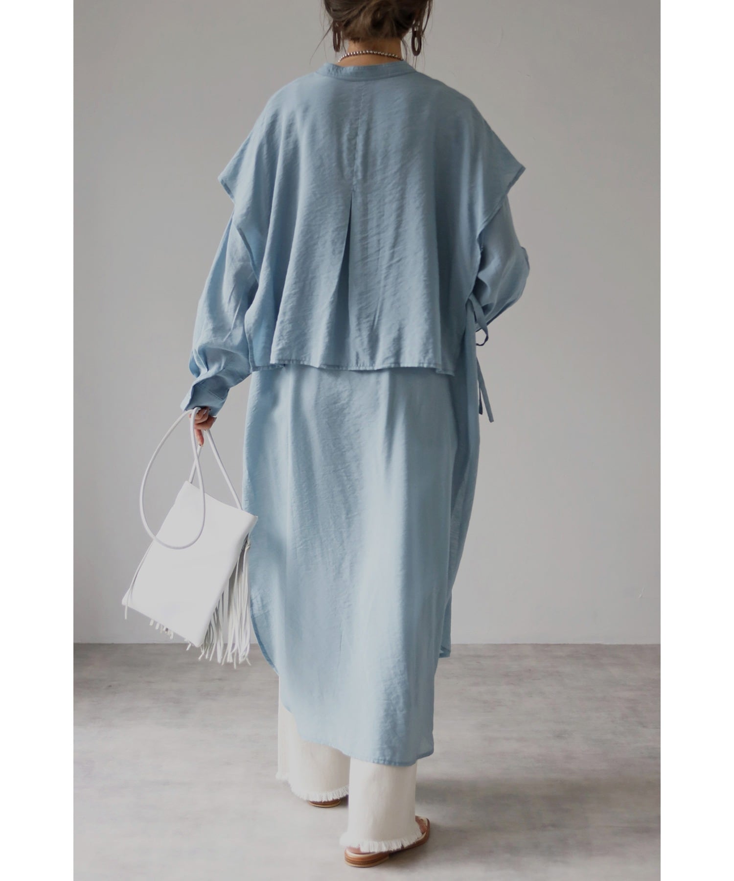 ベストを重ねたようなデザインが今季らしいバンドカラーシャツワンピース。