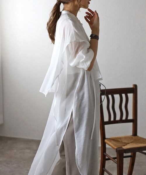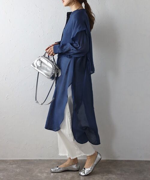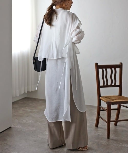 サイドに深めのスリットが施されているため、パンツやスカートと合わせて着ていただけます。