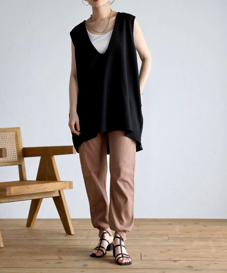 ジョガーパンツはカジュアル過ぎてコーディネートに取り入れにくいという方にも、上品に着こなしていただける1着です。