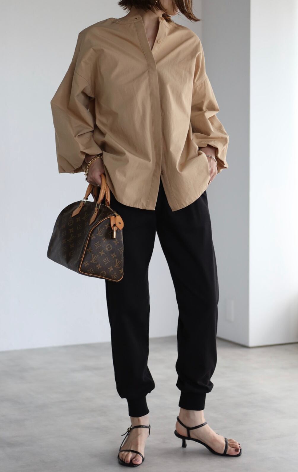 バンドカラーシャツやボリューム袖のブラウスとの相性が良いデザイン。