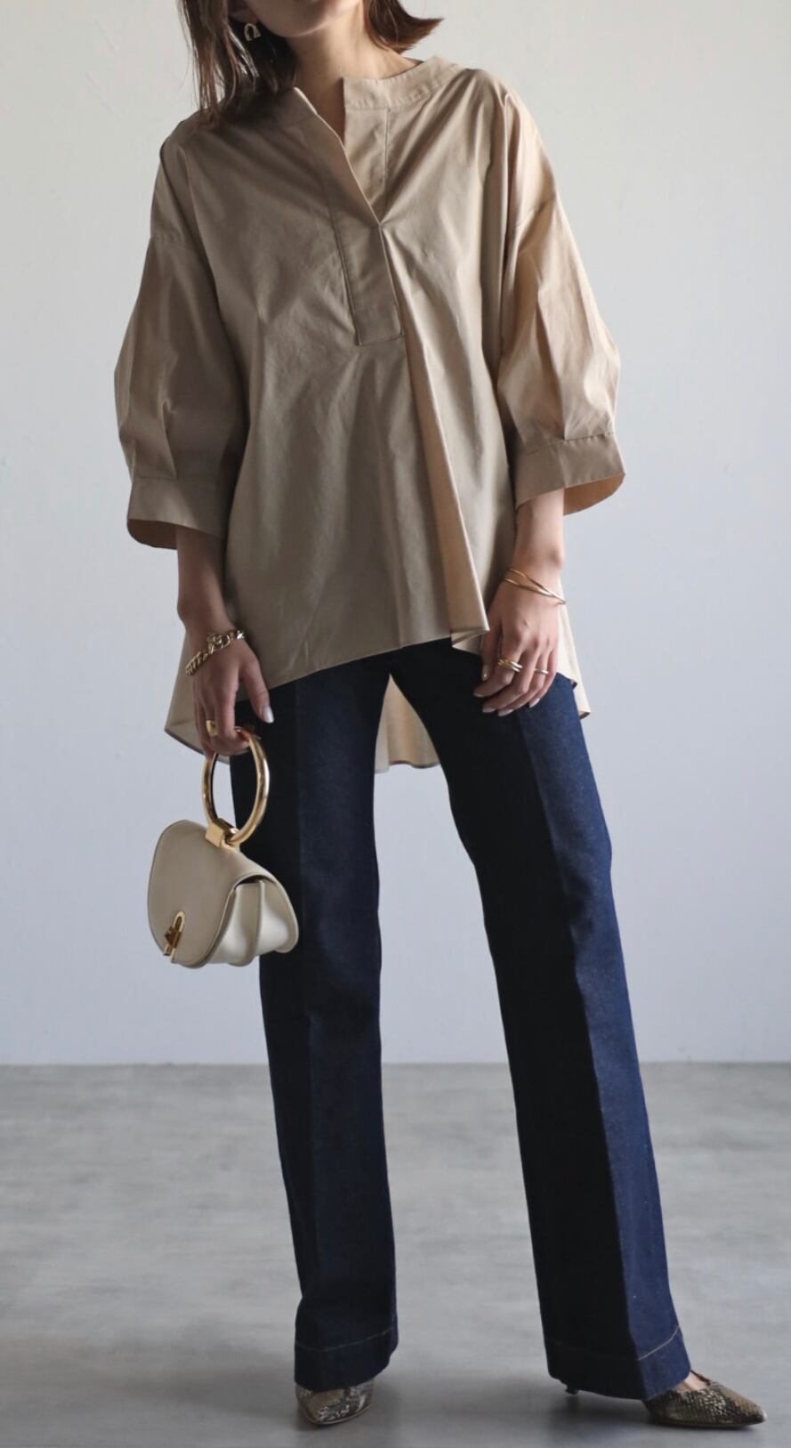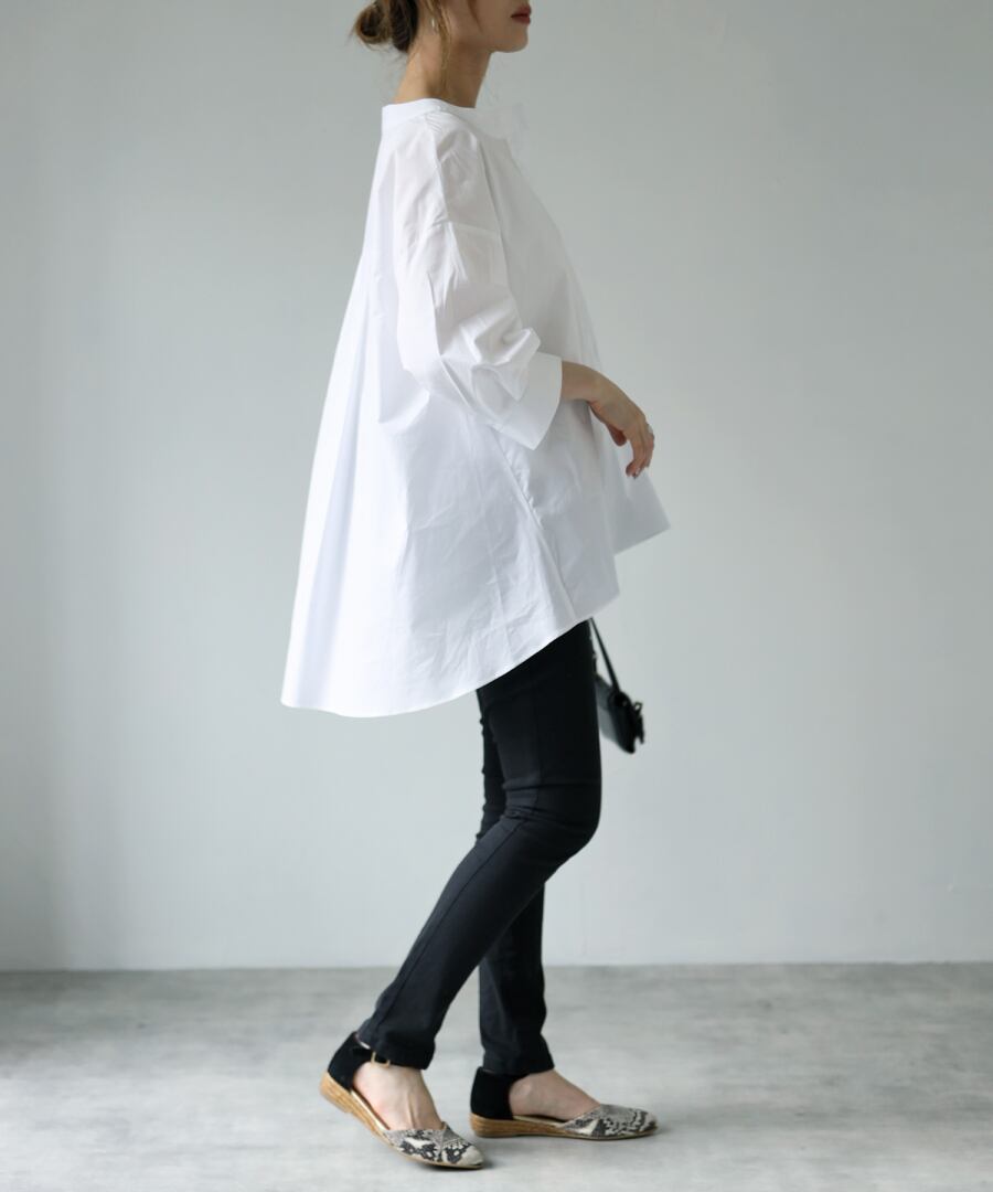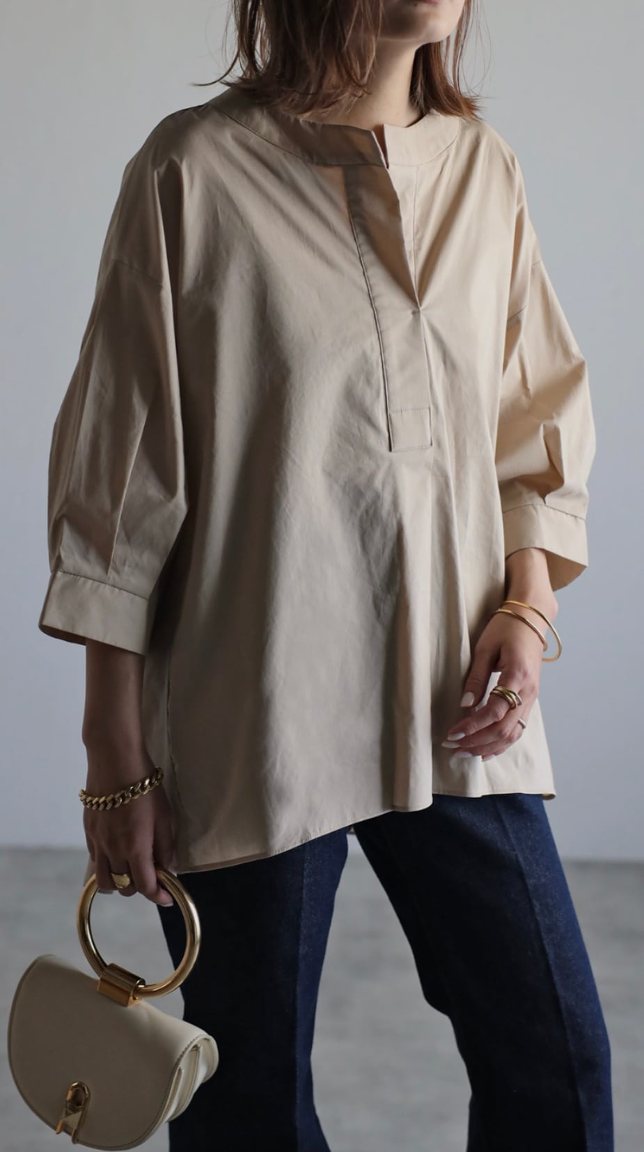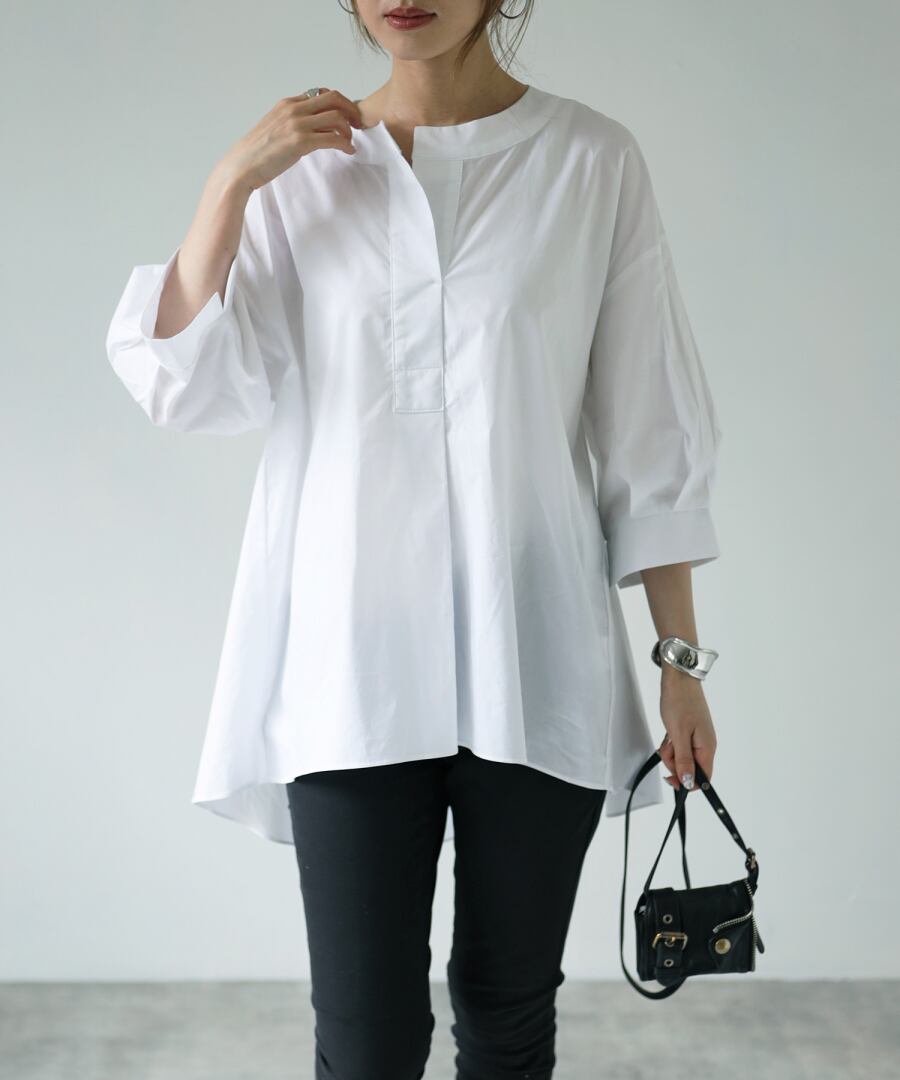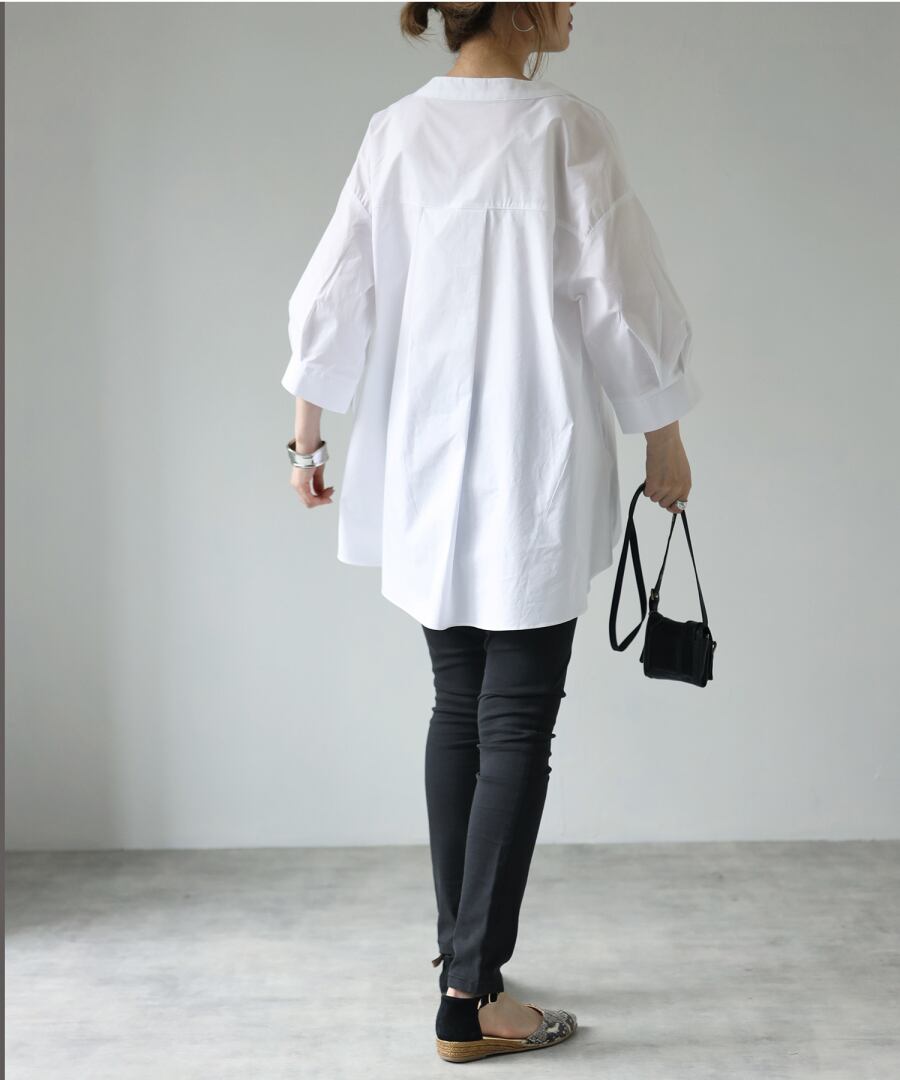着るだけで可愛く見えるノーカラースキッパーシャツ