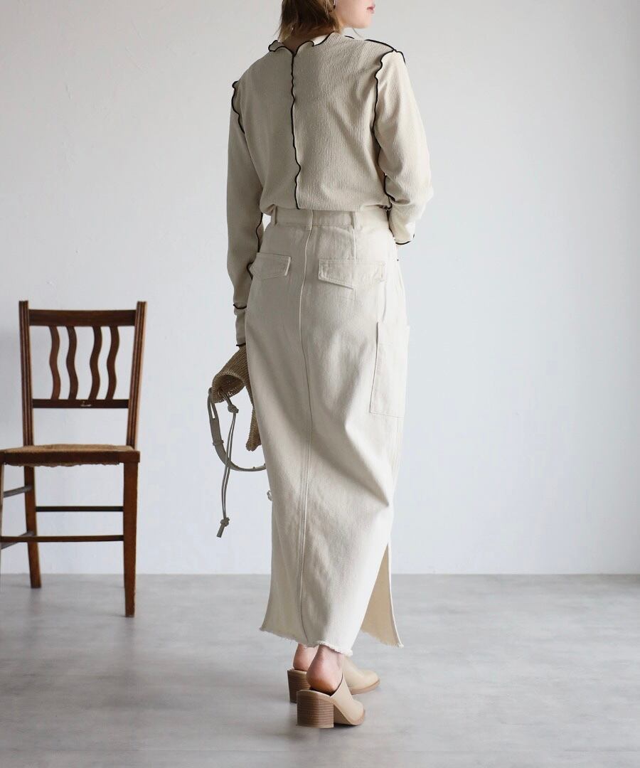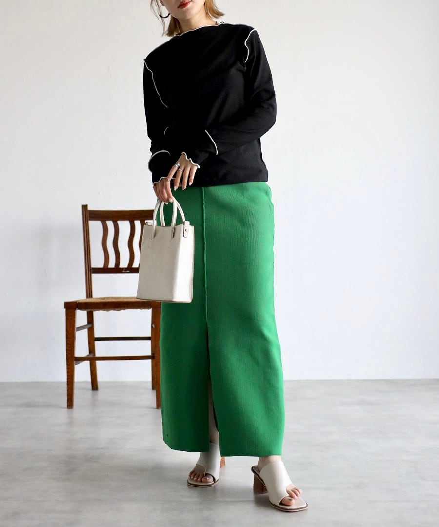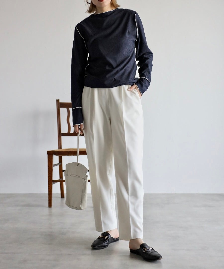 トレンド感あるデザインなので、スキニーデニムやテーパードパンツに合わせるだけで旬のコーディネートが完成。