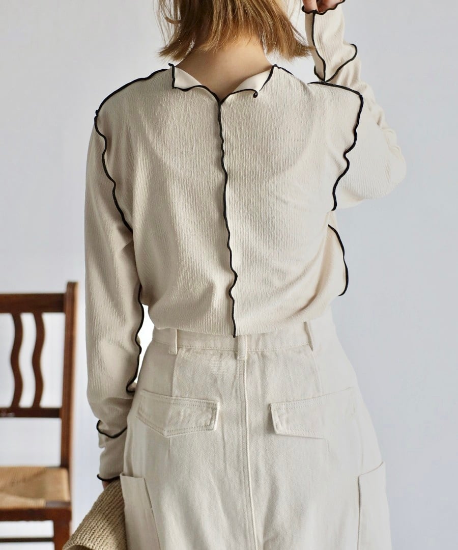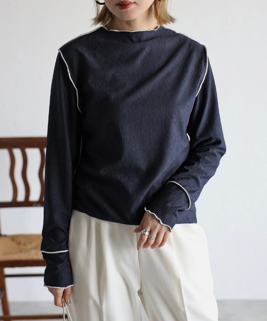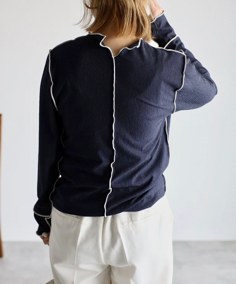 襟バック部分にスリットが入っており後ろ姿まで魅力なカットソーです。