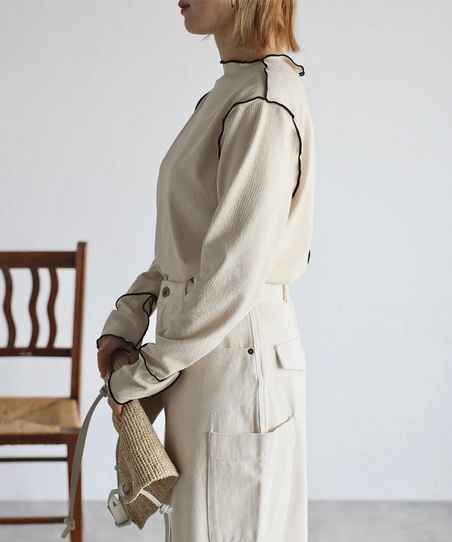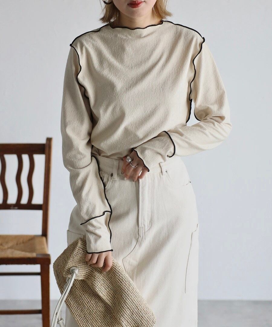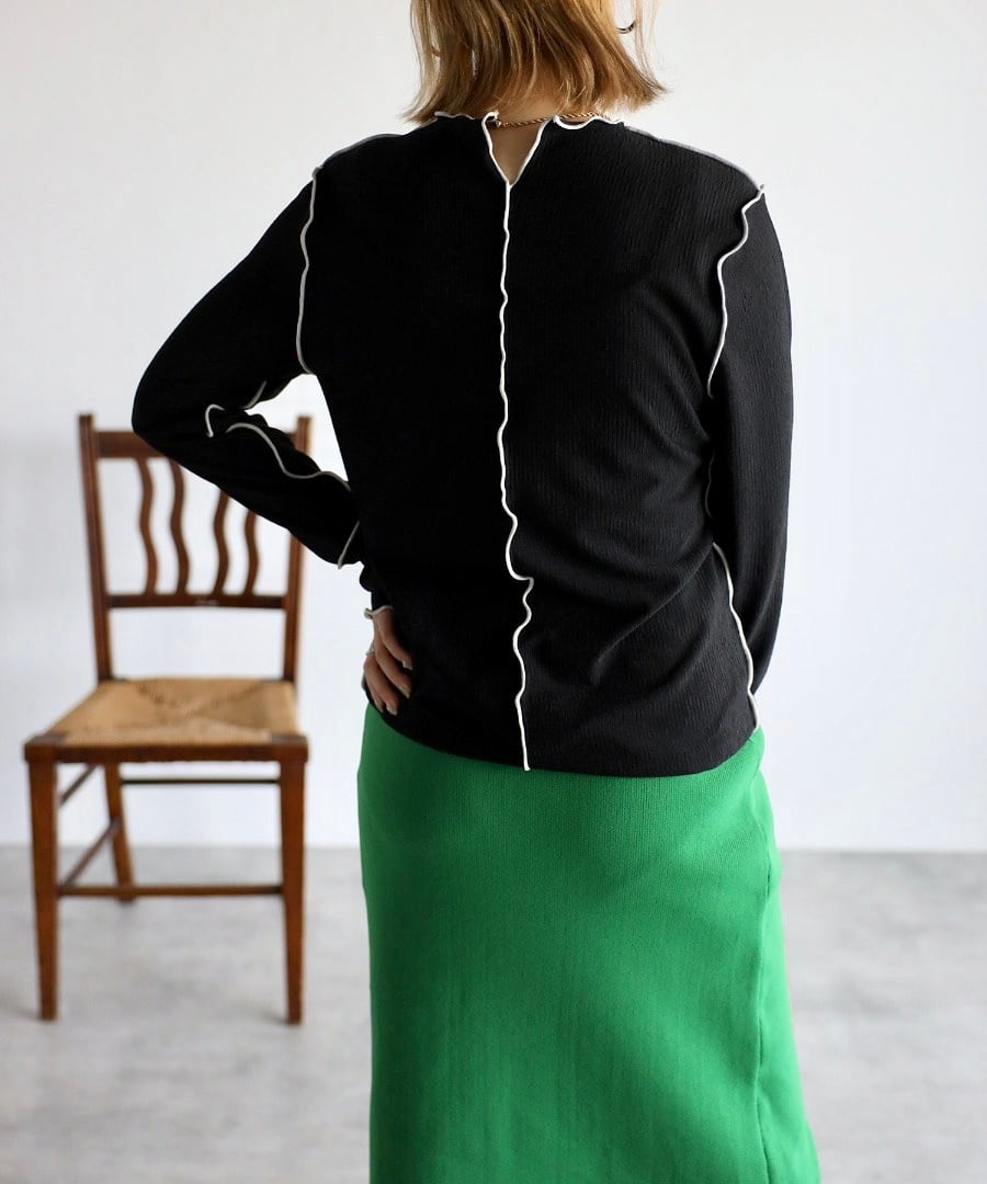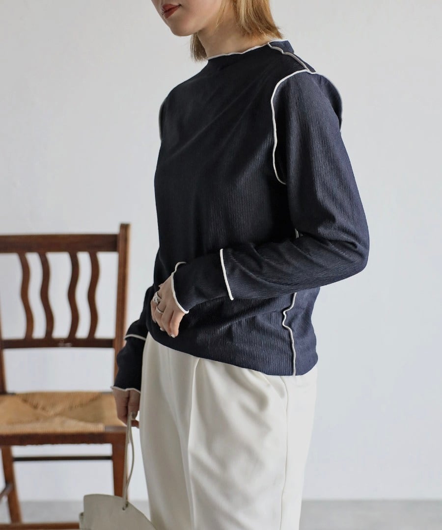襟バック部分にスリットが入っており後ろ姿まで魅力なカットソーです。