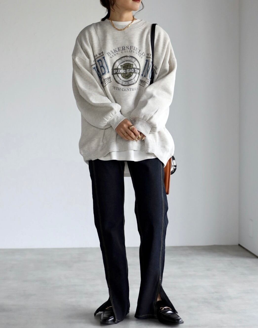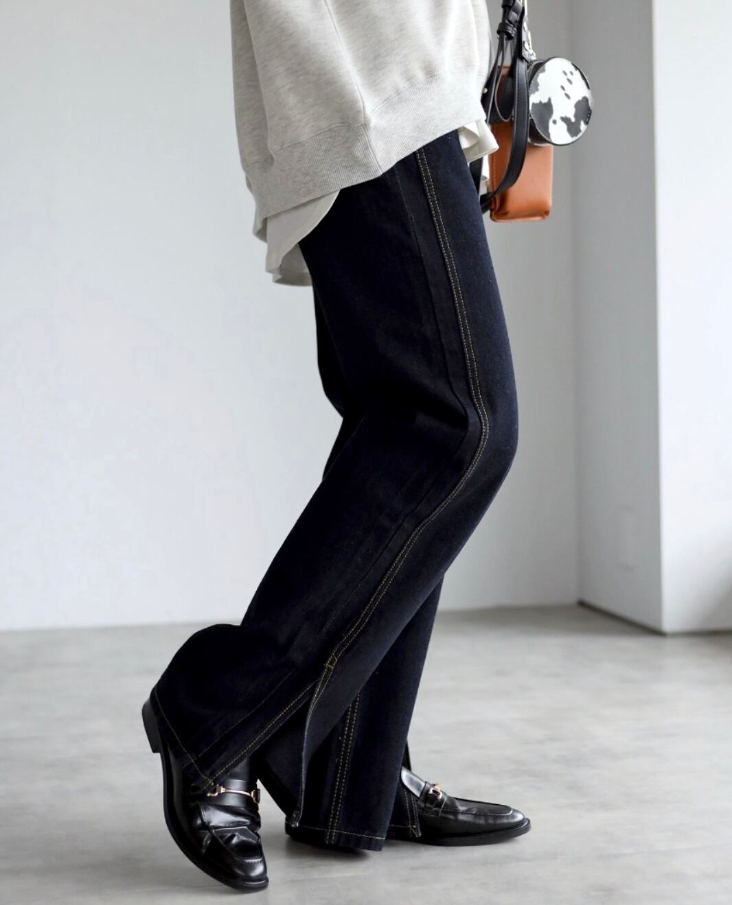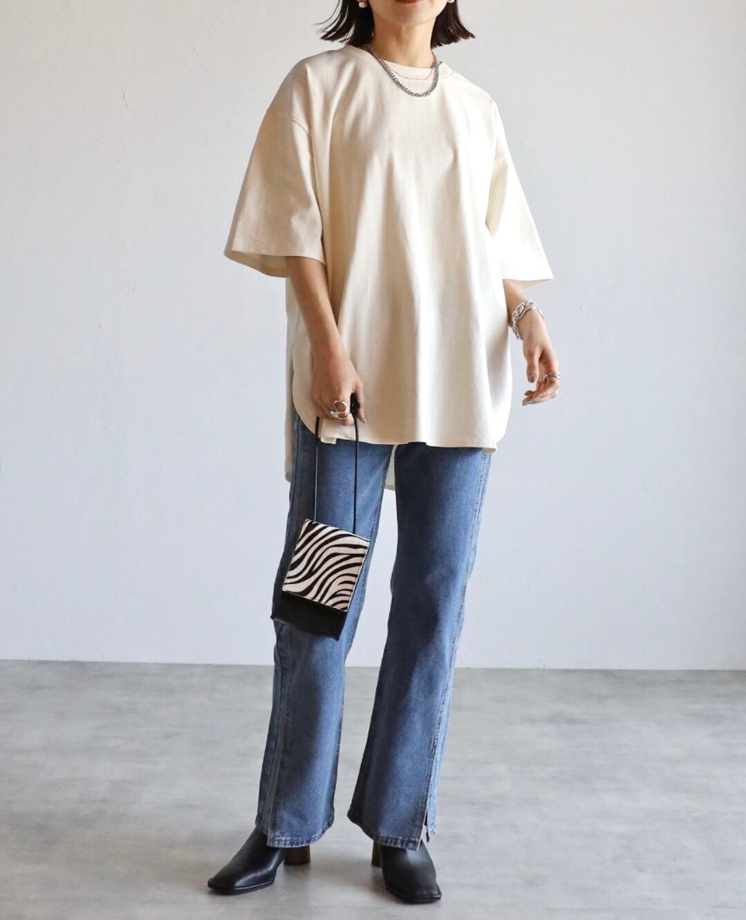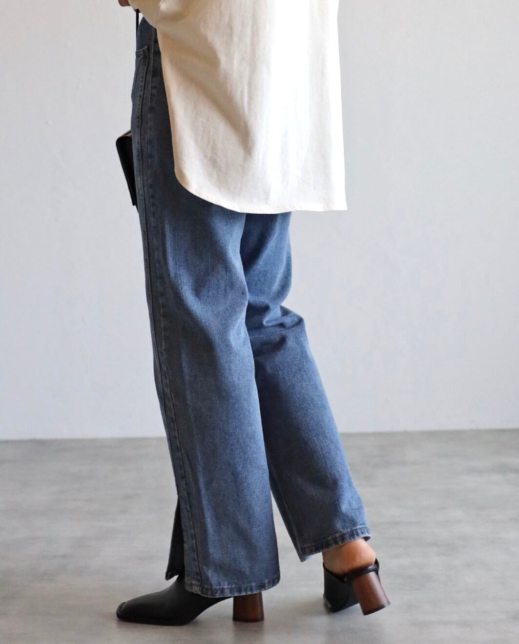 弱ケミカルな加工感も◎脚長効果バッチリの裾スリットデニムパンツ