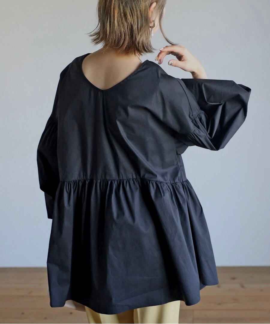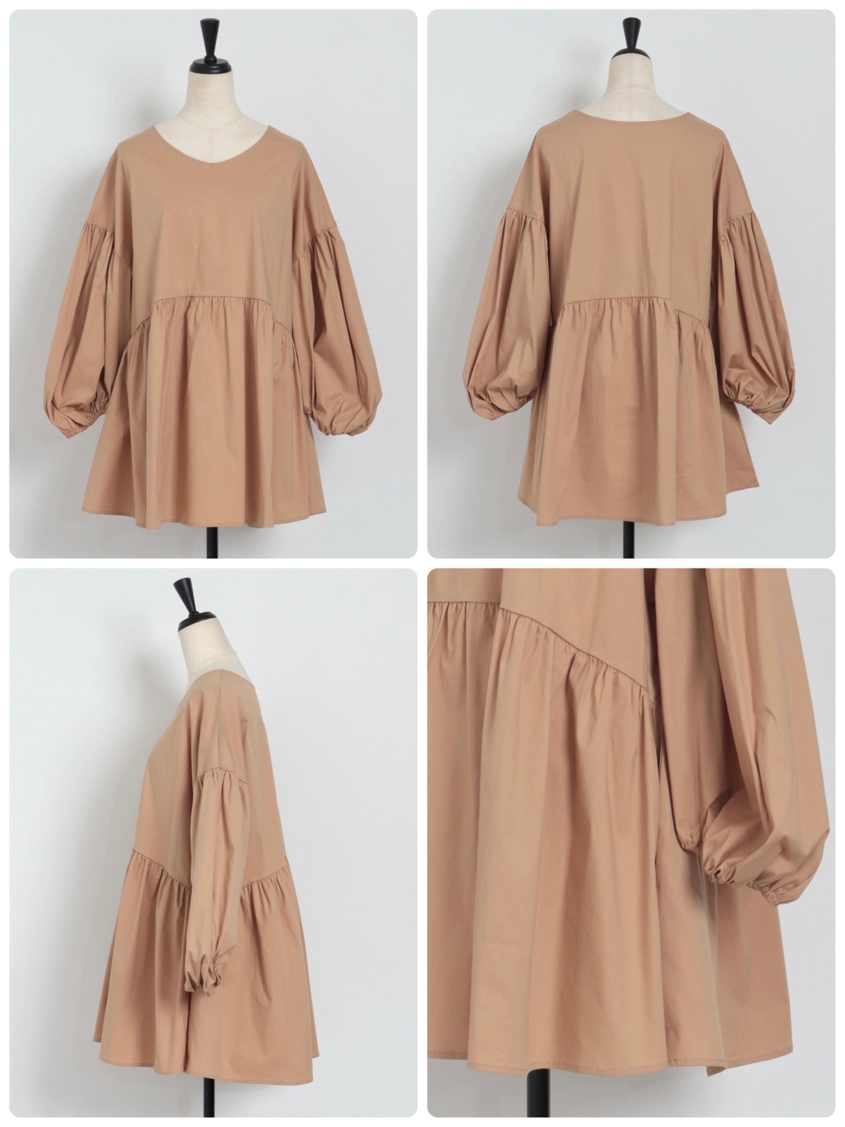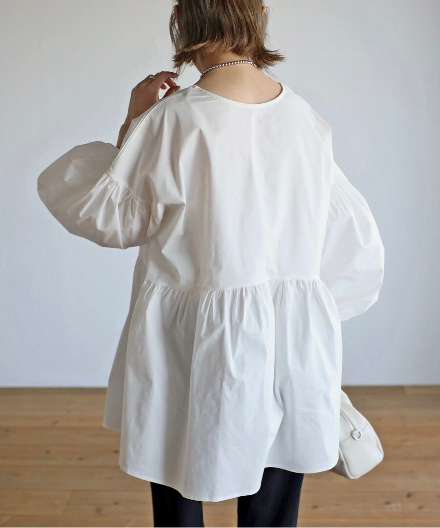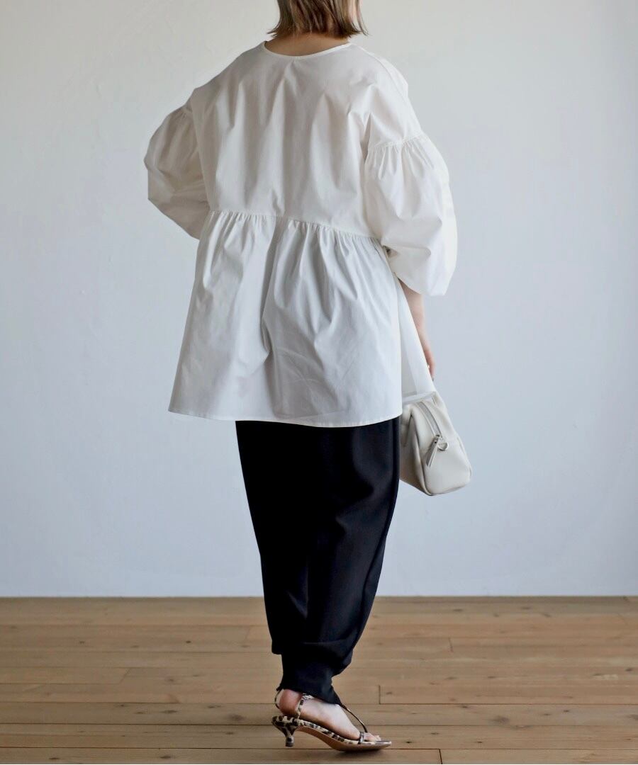 今季らしいボリュームスリーブがポイントのティアードブラウス。