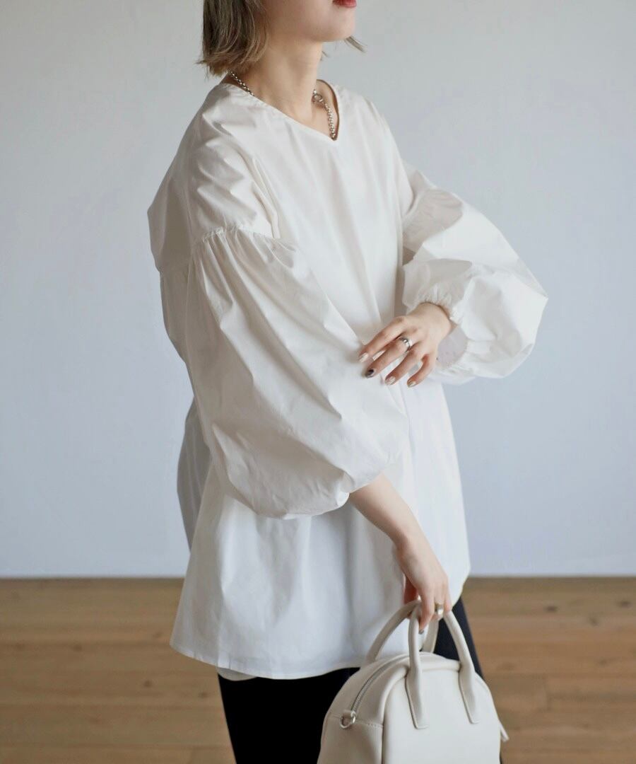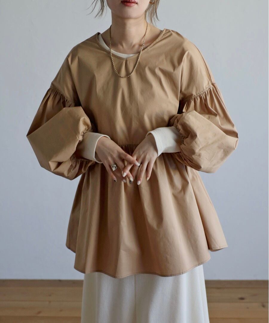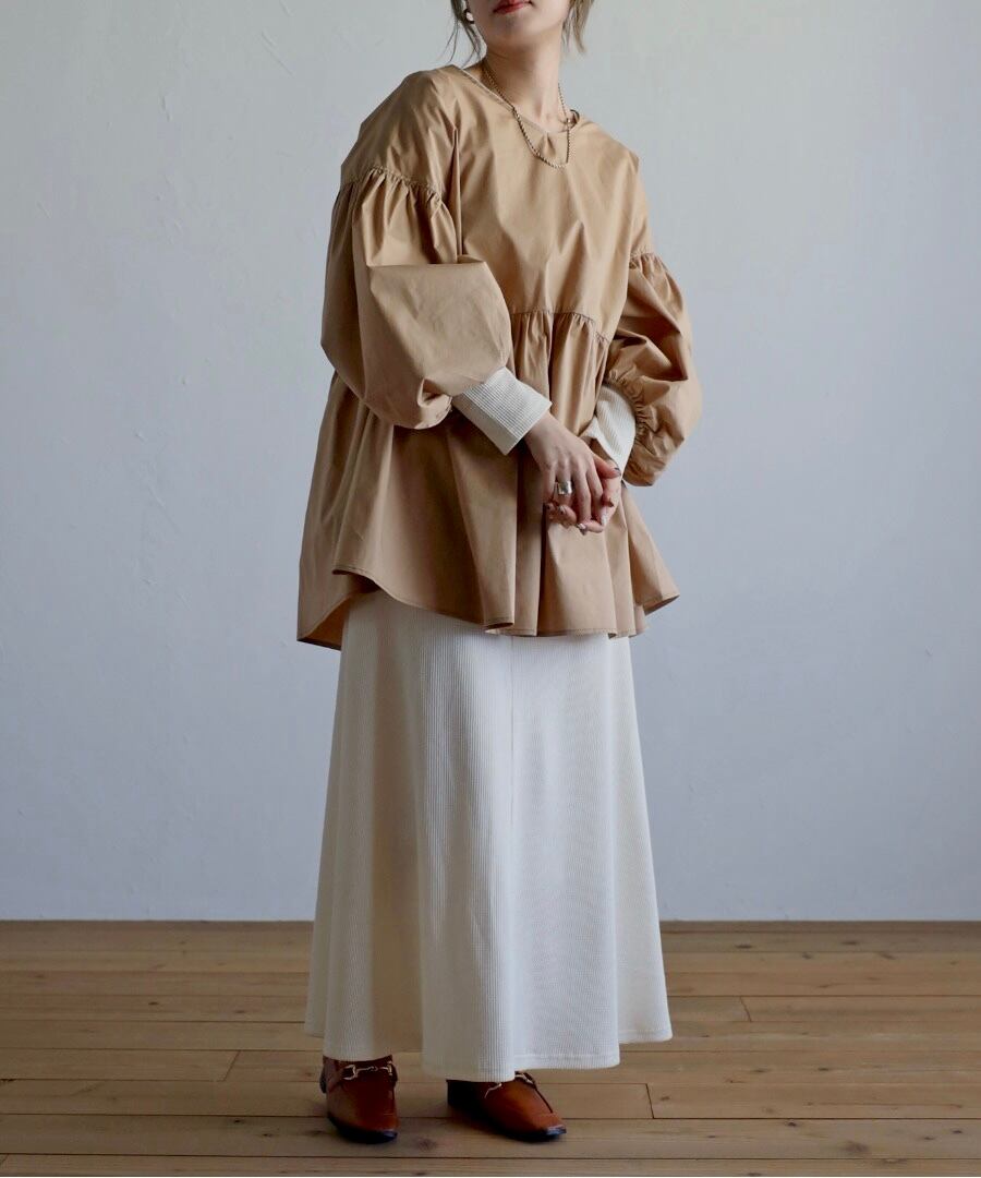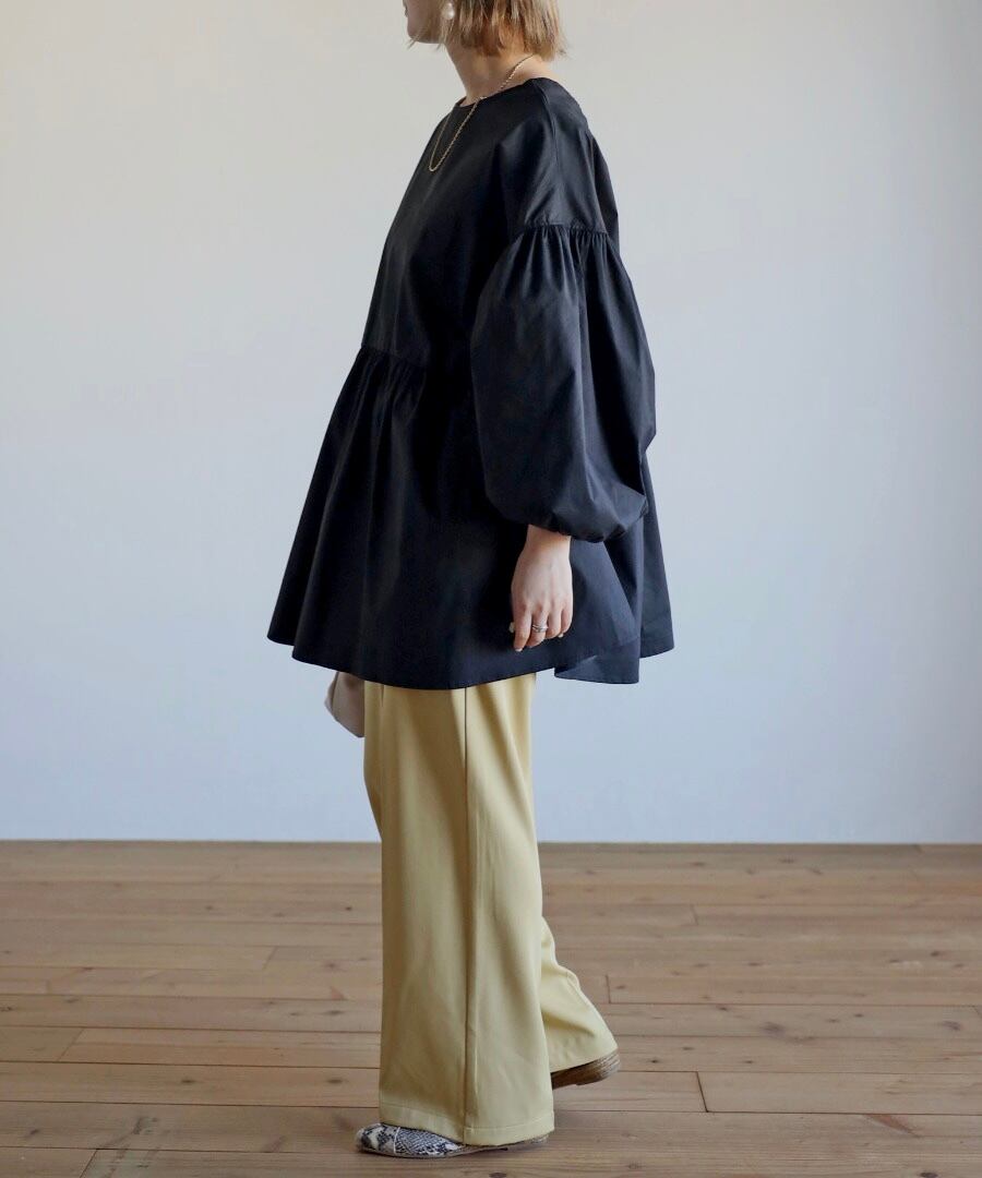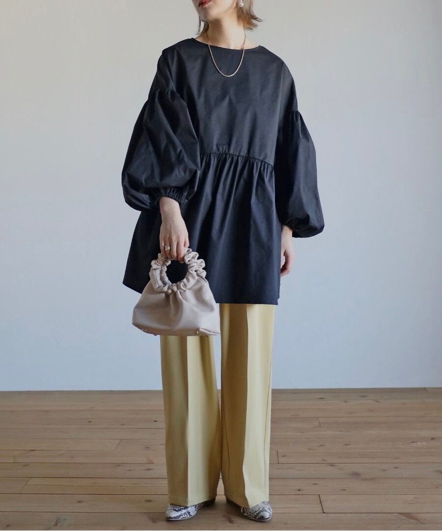ボリューム感が可愛いブラウスはリブレギンスやテーパードパンツなどと相性抜群。