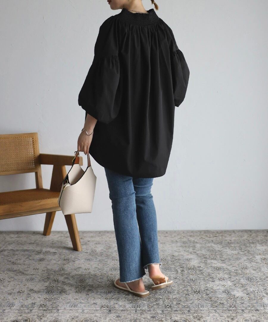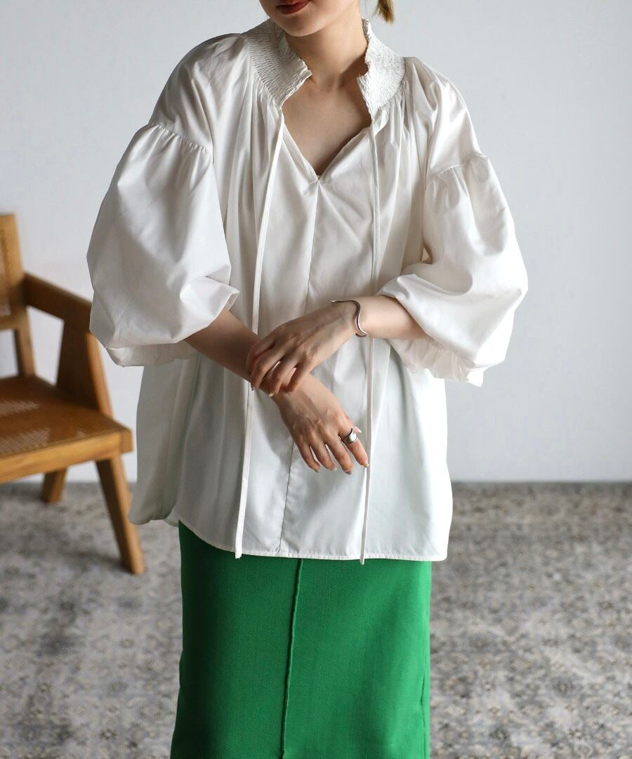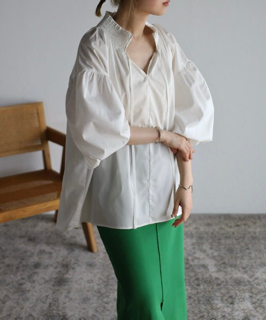 バルーンスリーブシャーリングブラウス