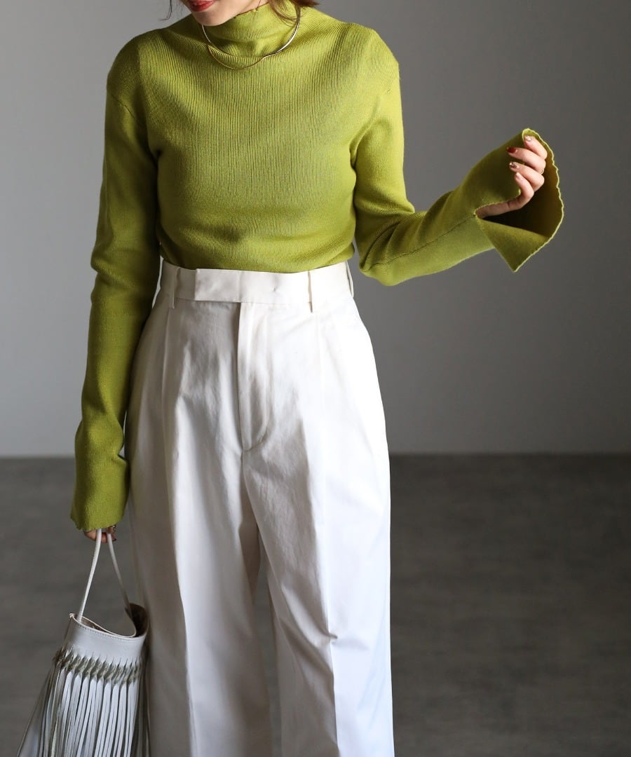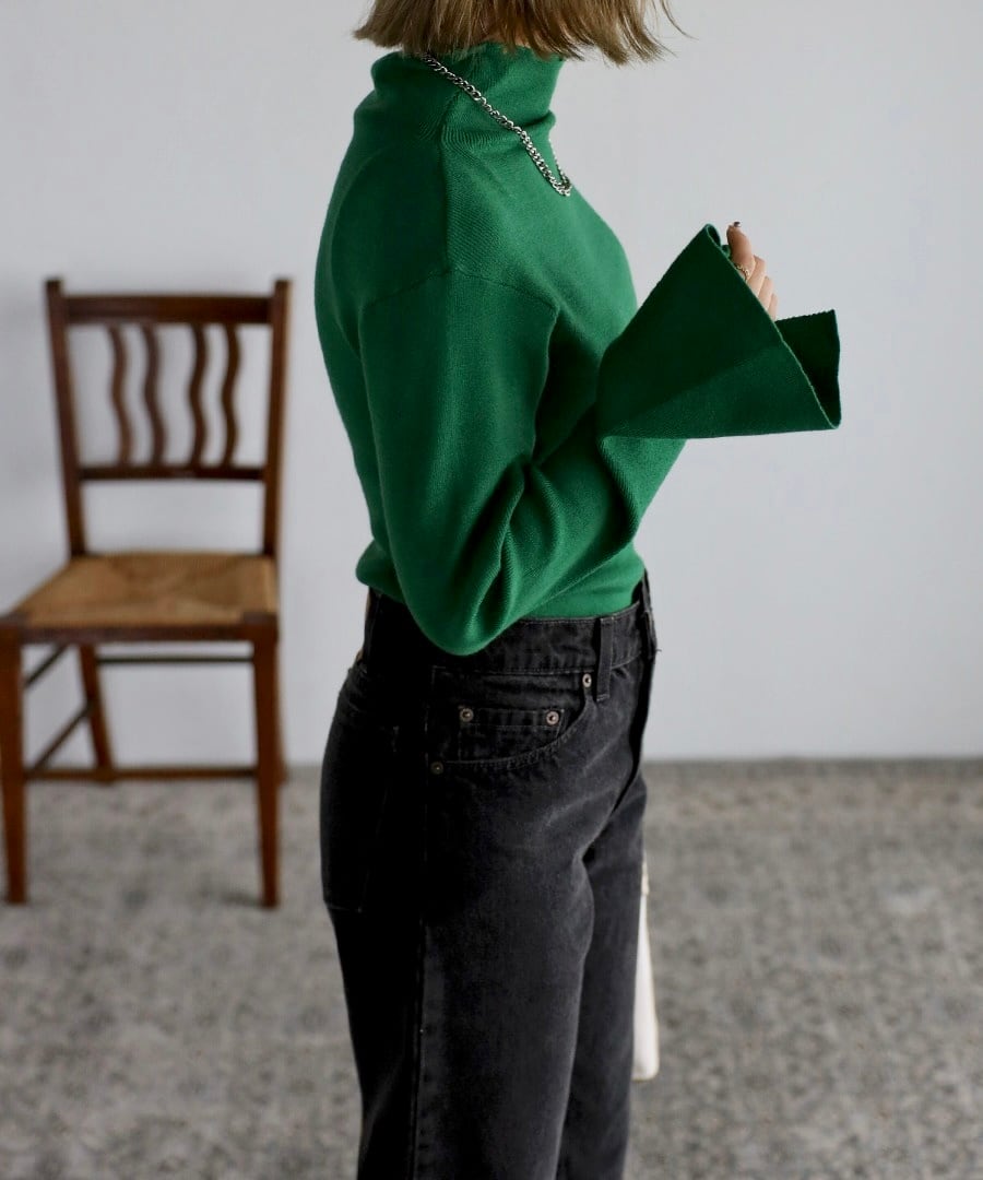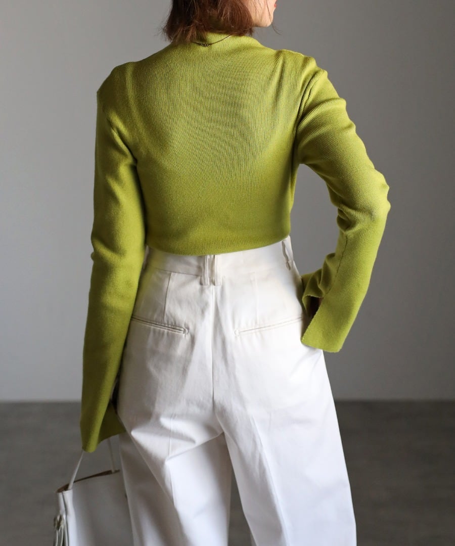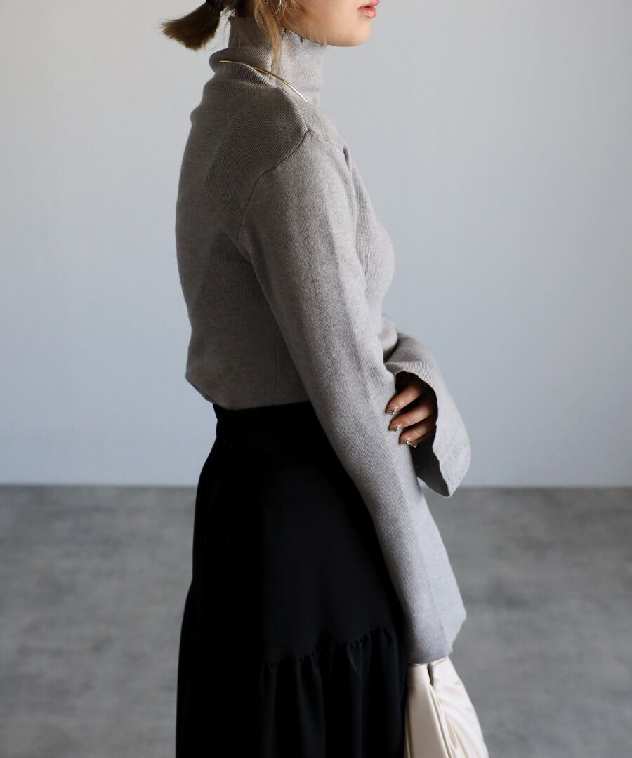 袖にかけて広がりがあるフレアシルエットとスリット仕様が魅力的なニット。