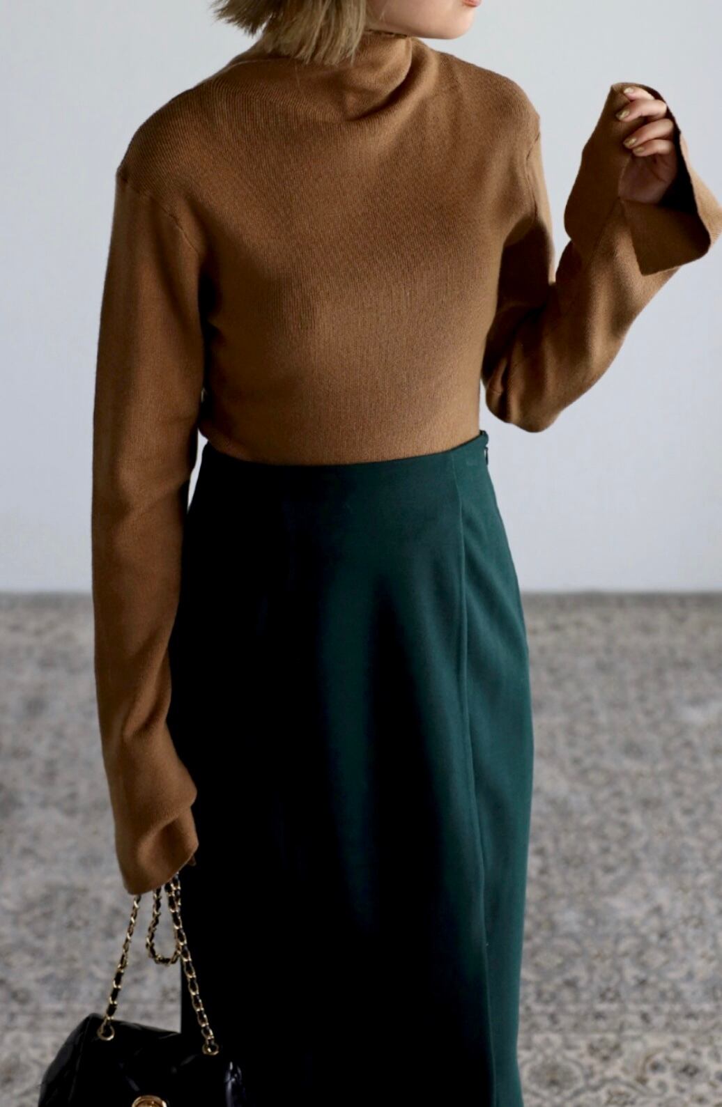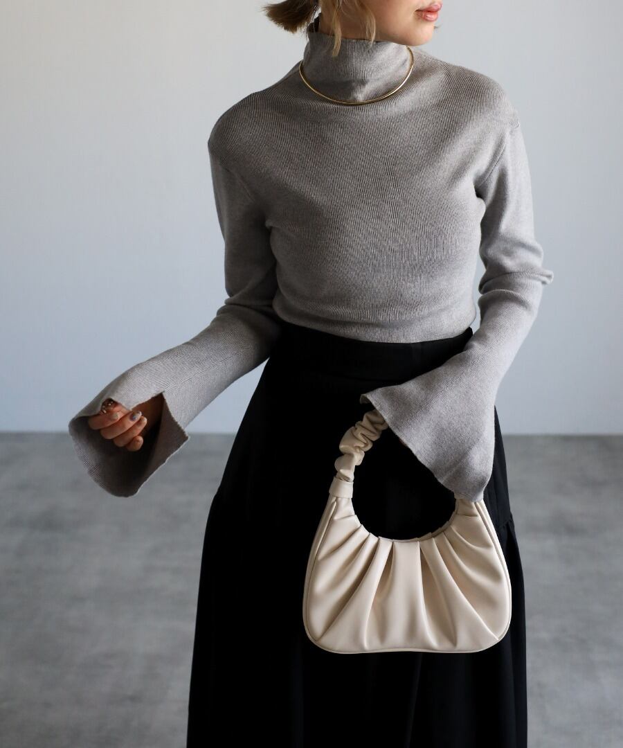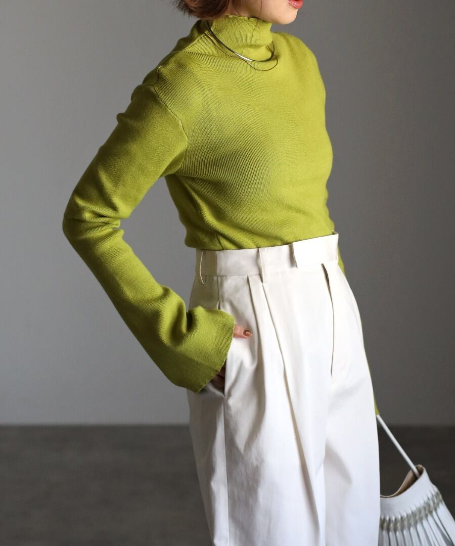 袖にかけて広がりがあるフレアシルエットとスリット仕様が魅力的なニット。