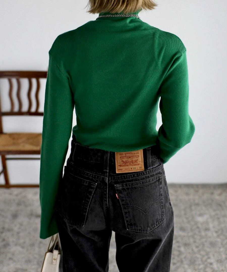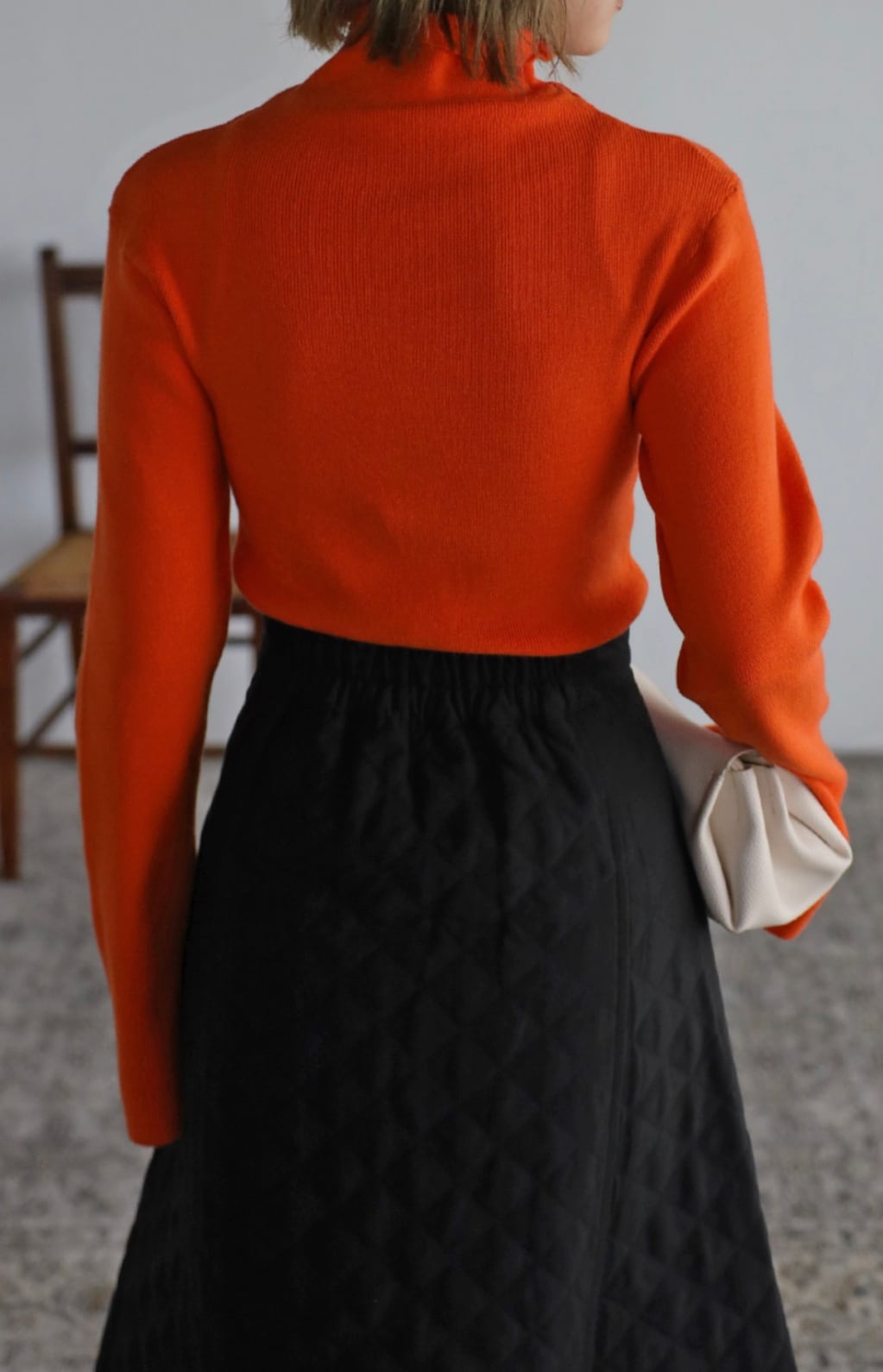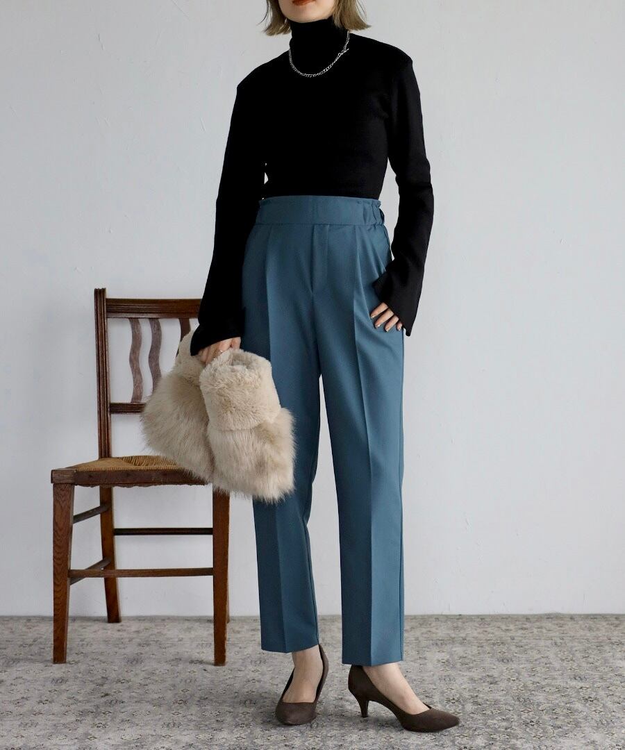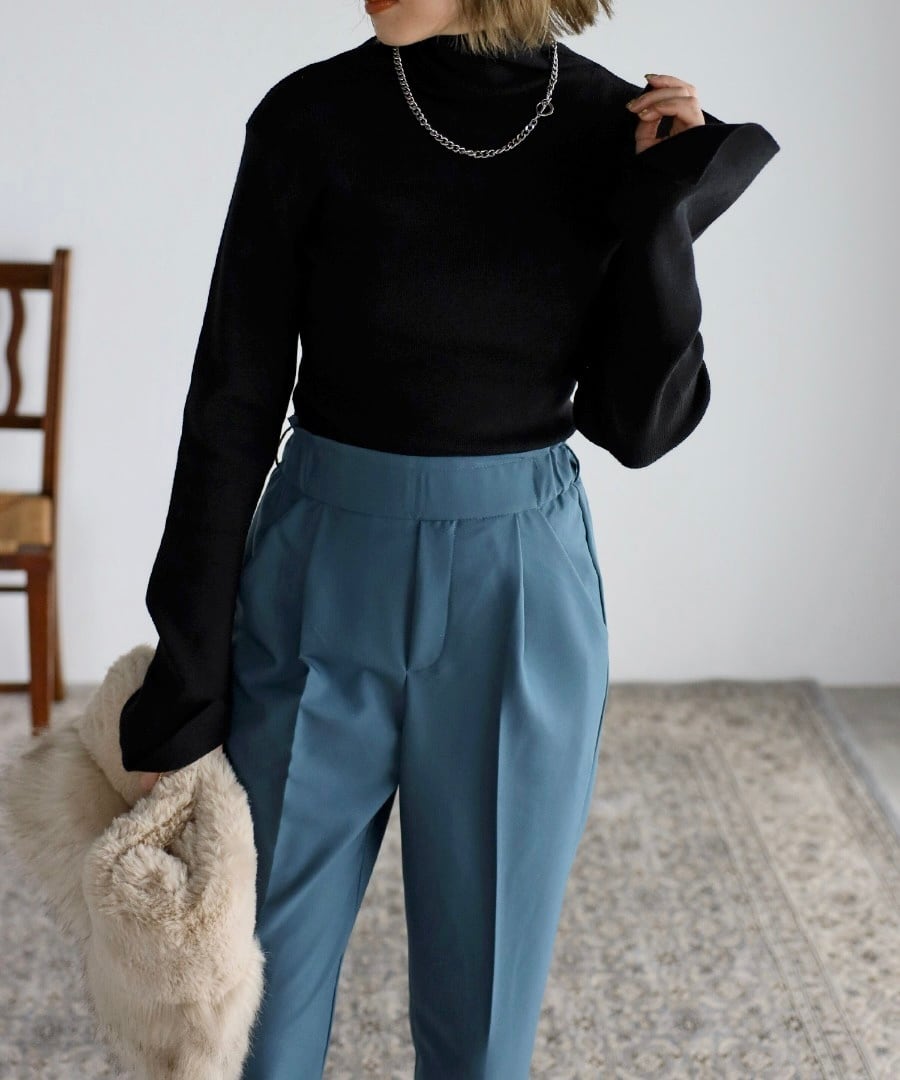 細かいリブ素材は体のシルエットを出し過ぎず、体型をカバーしてくれます。