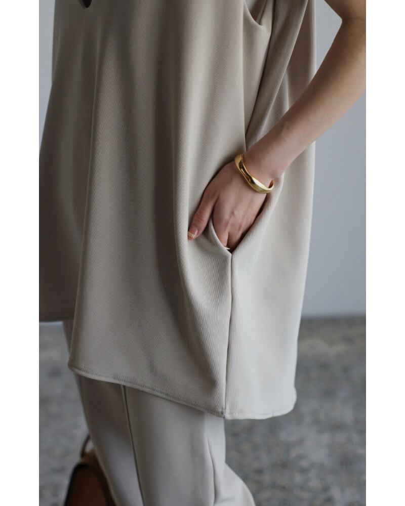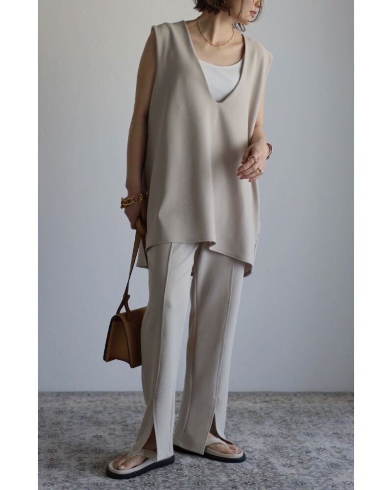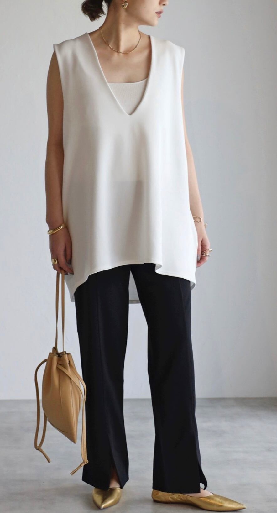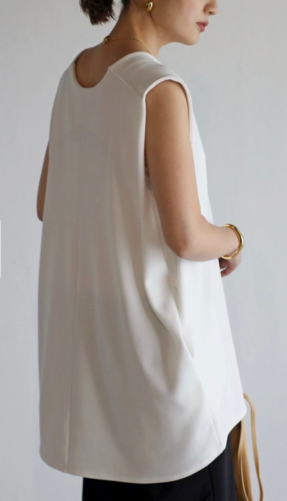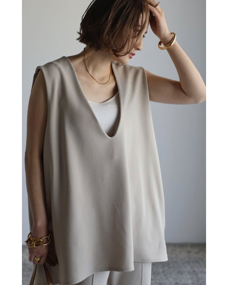 累計販売数2,500枚突破の大人気アイテム【Vネックノースリワンピース】と同じ素材を使ったトップス版