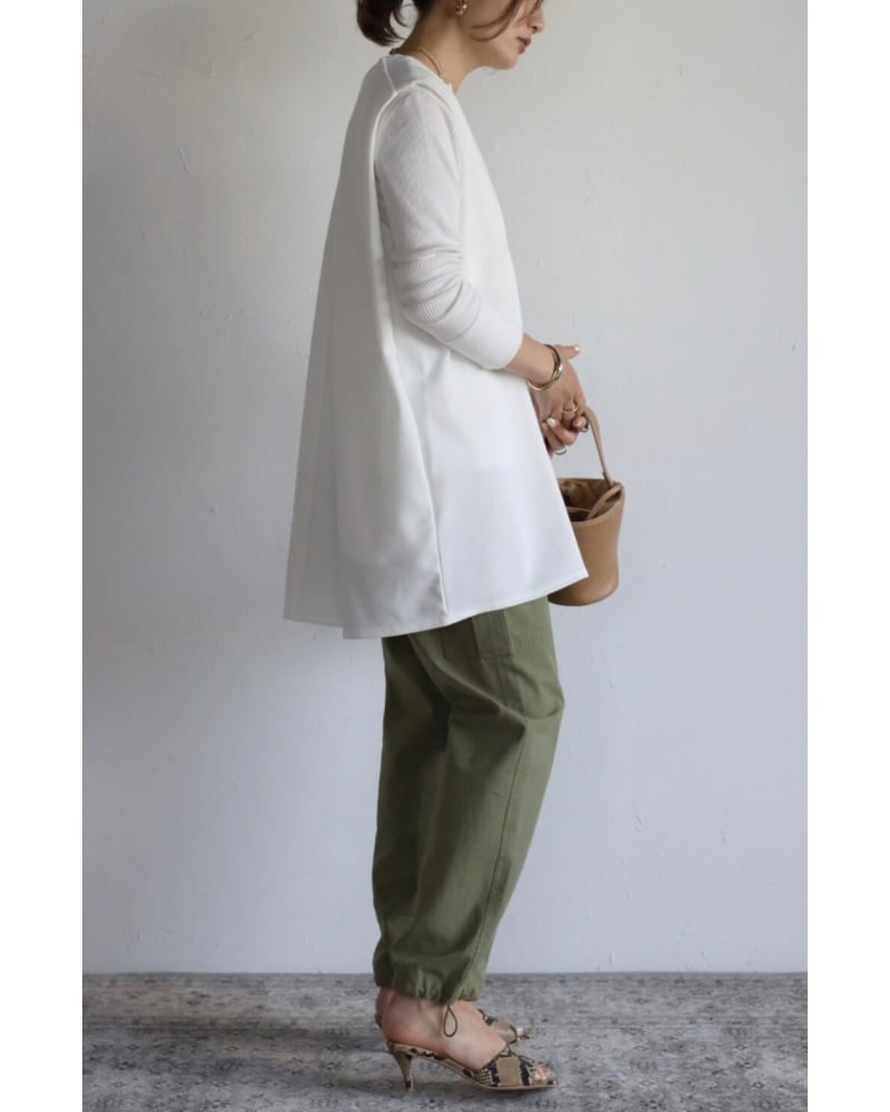 今の時期にはシャツなどをインナーに仕込ませて、暑い季節にはキャミソールなどとレイヤードしていただけます。