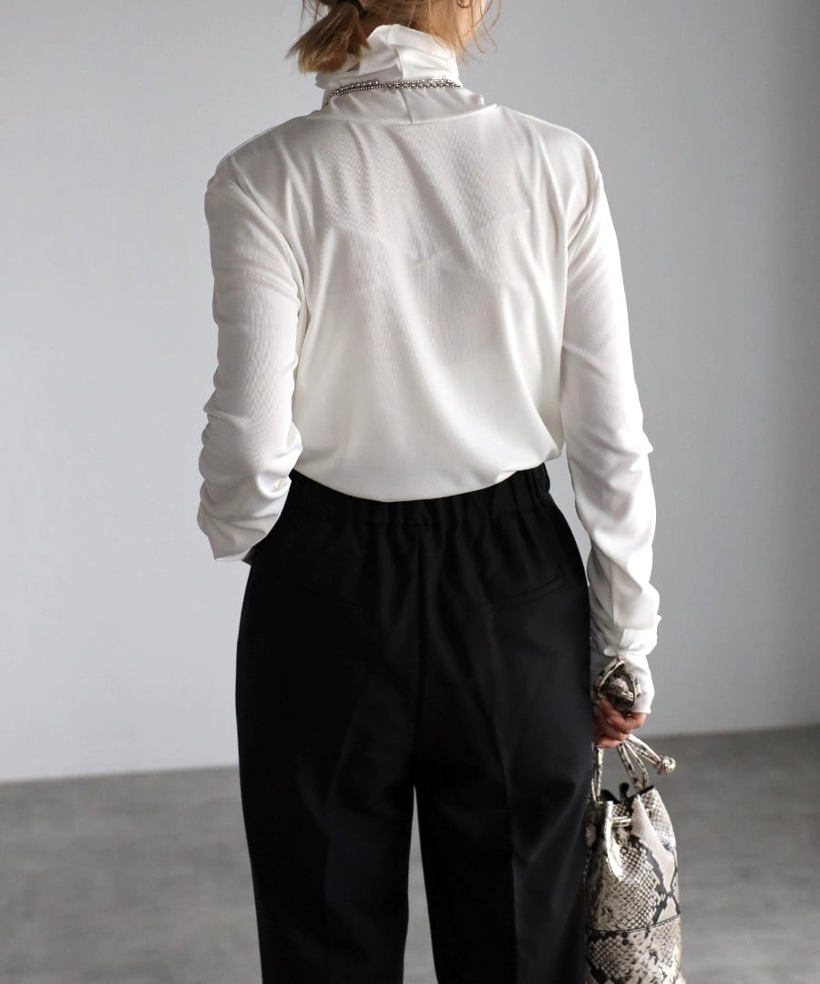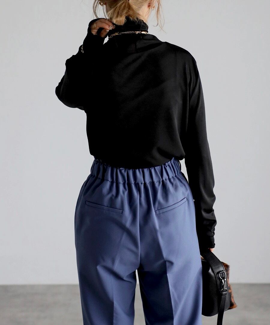 ストレッチのある生地でボディラインを拾い過ぎない絶妙なサイズ感。