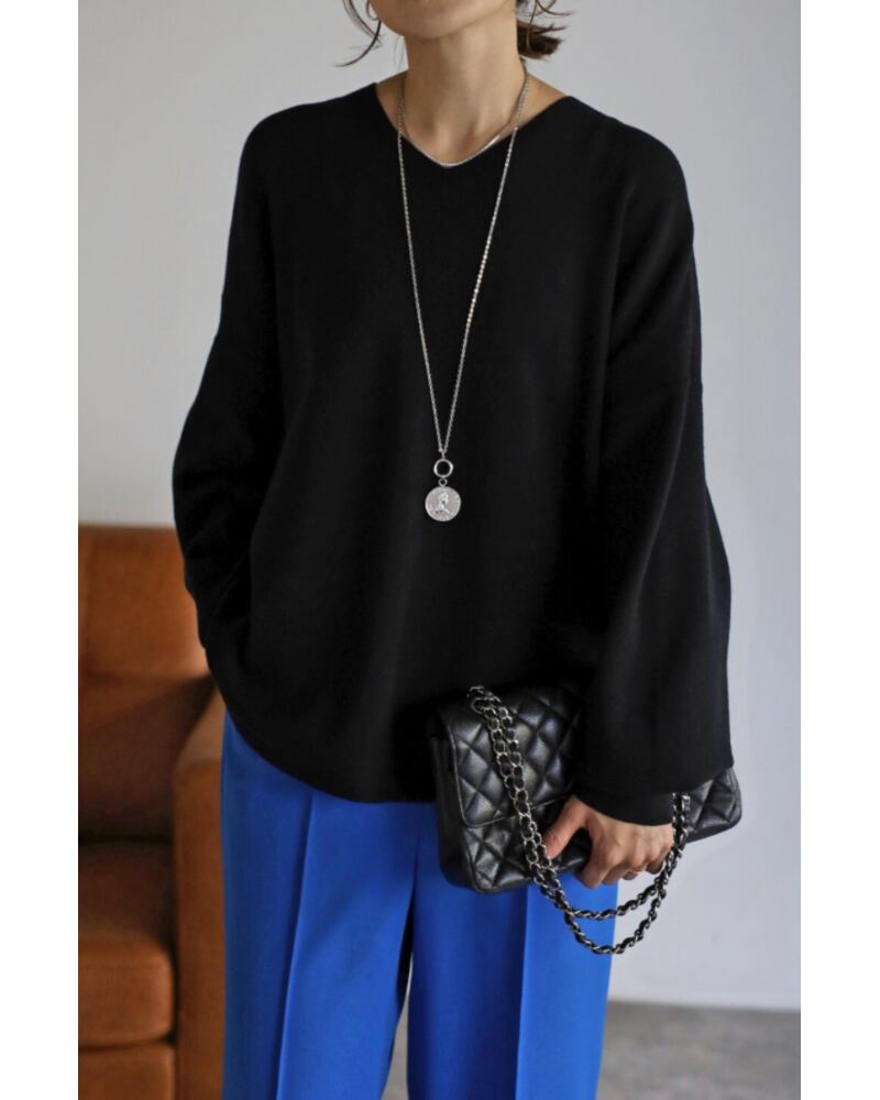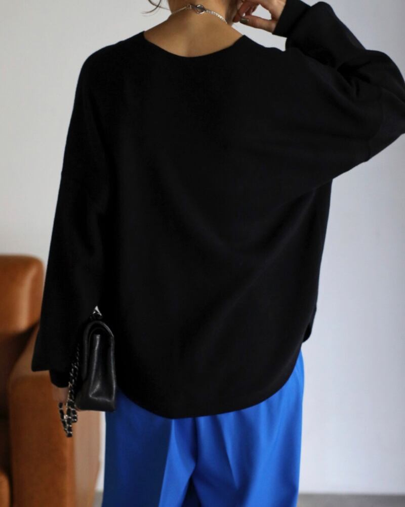 ラウンドヘムシルエットがリラクシーなVネックニットプルオーバー