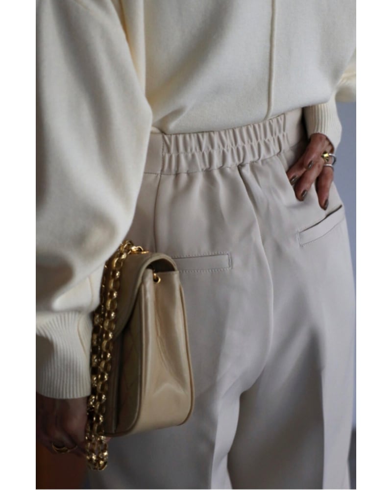 きれいめからカジュアルまで使える上品で美脚効果のあるパンツ。