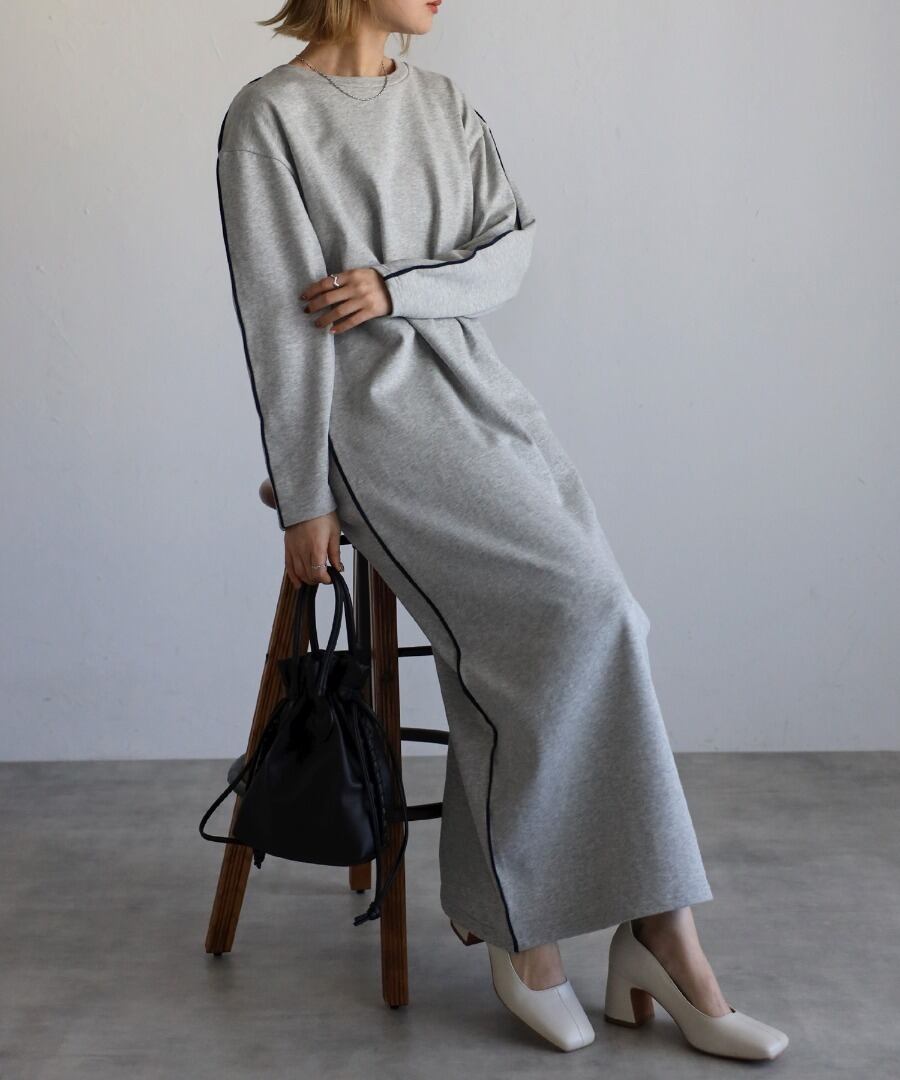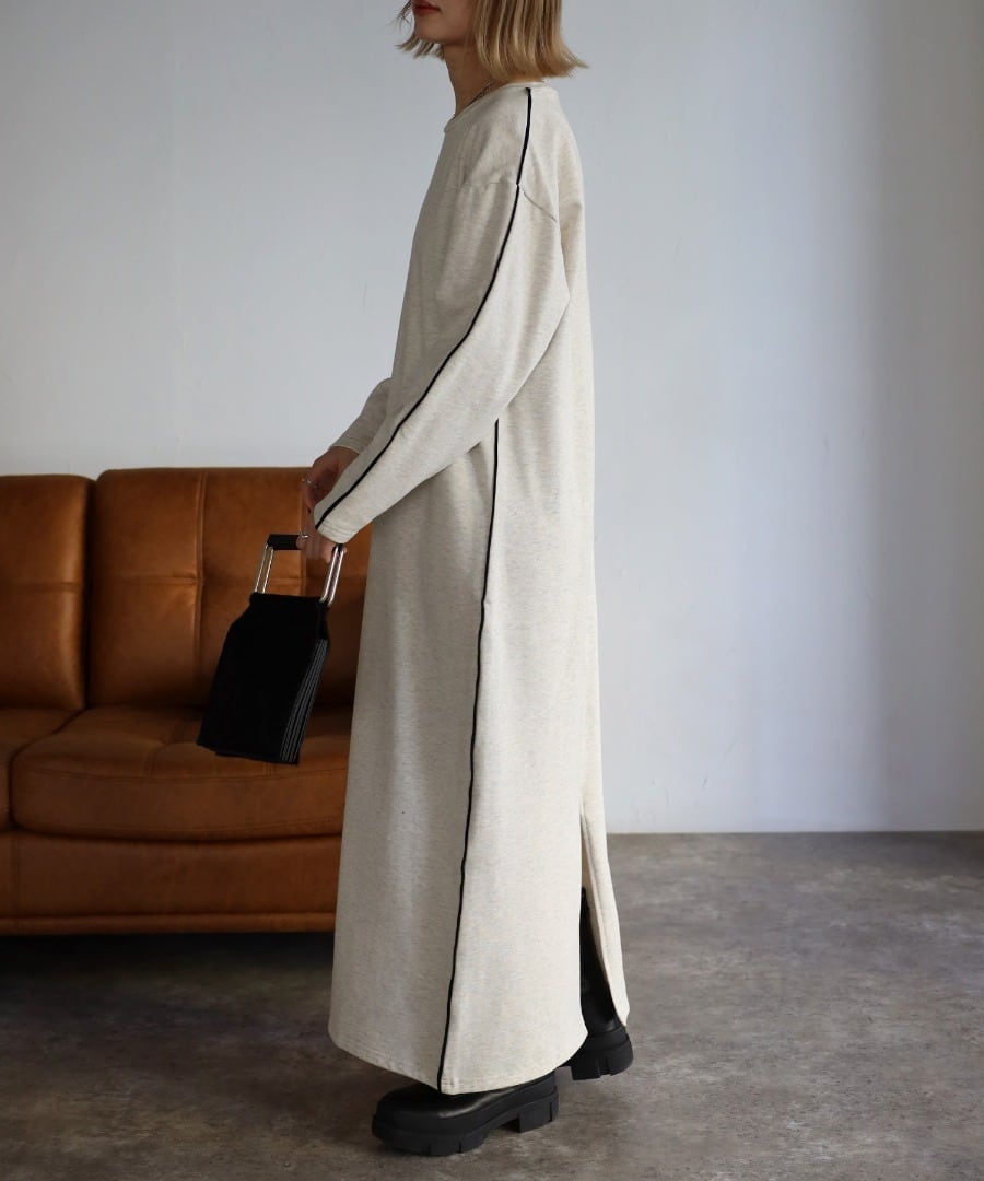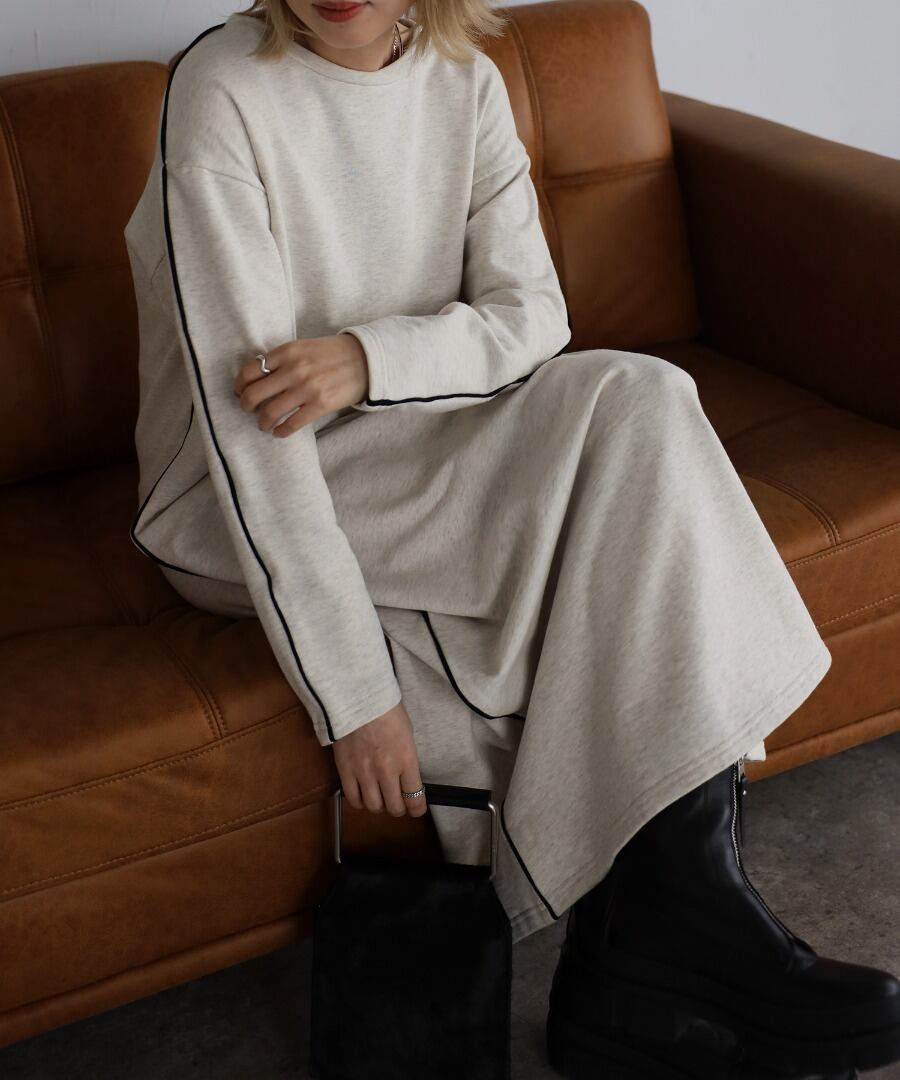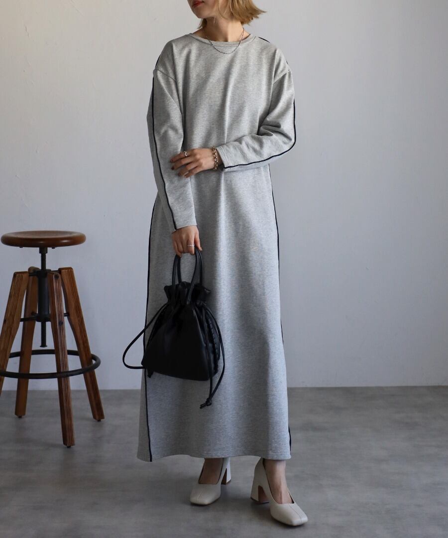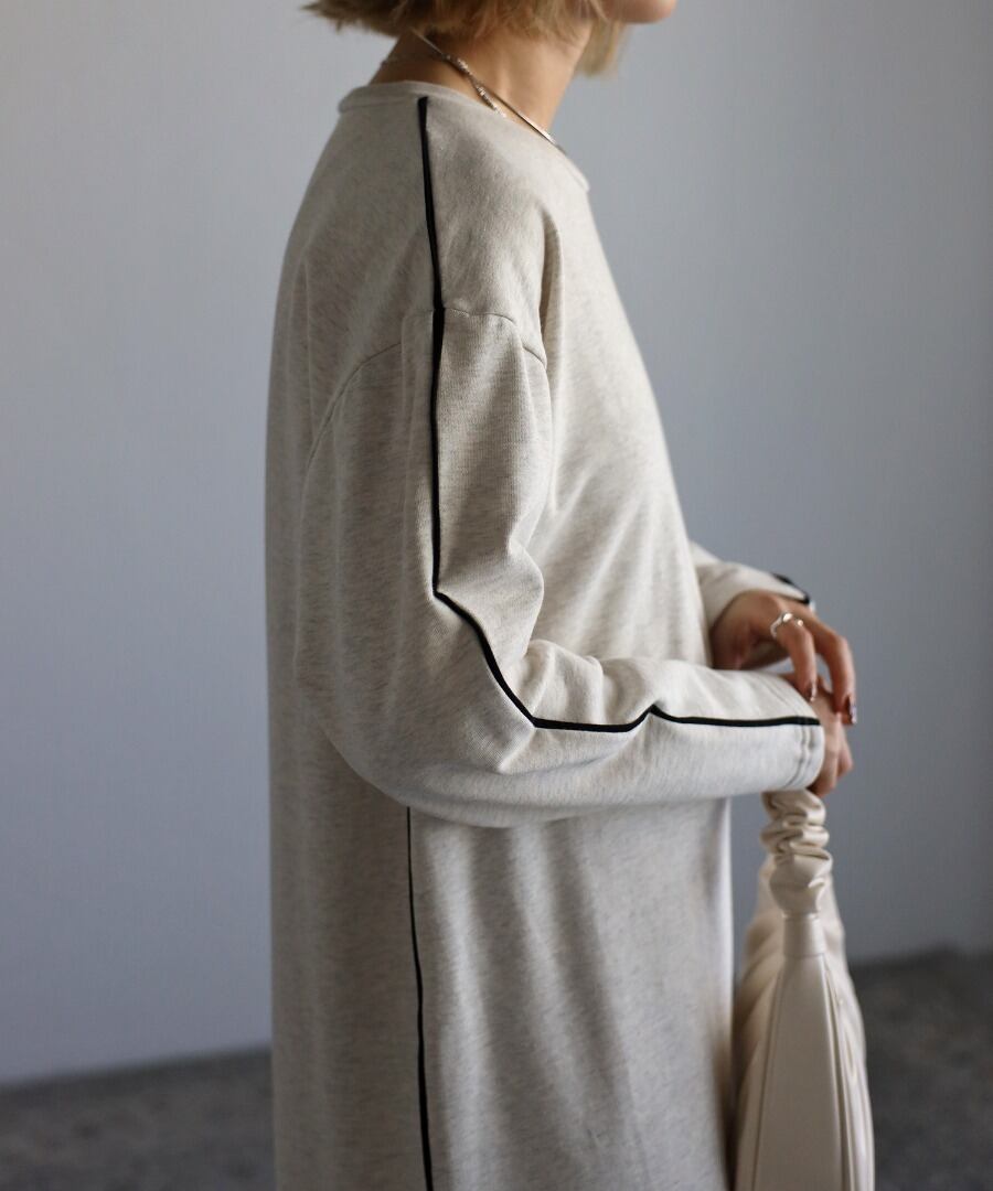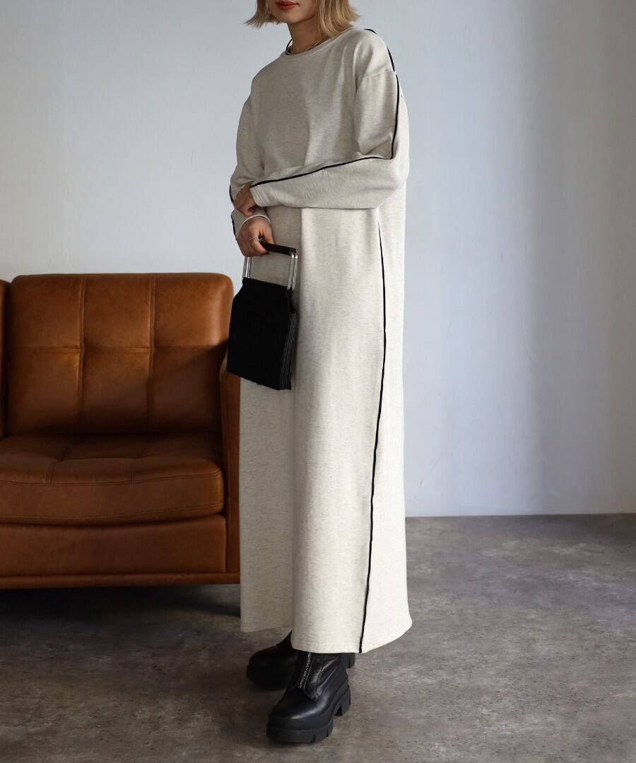 配色パイピングがアクセントのスウェットワンピース
