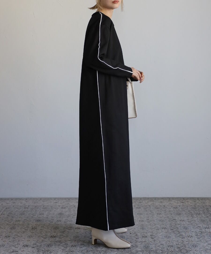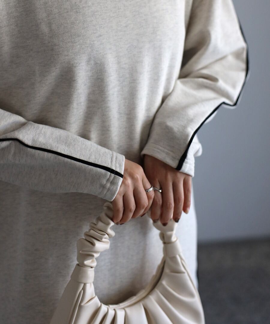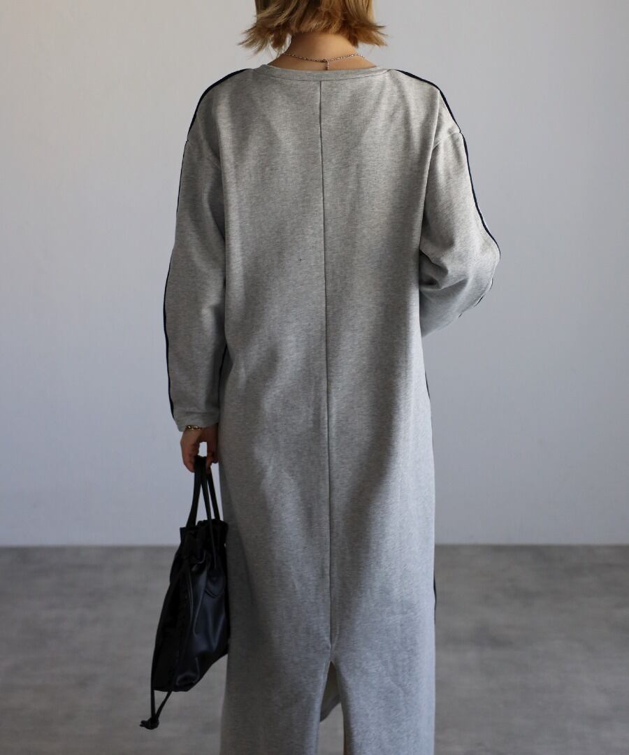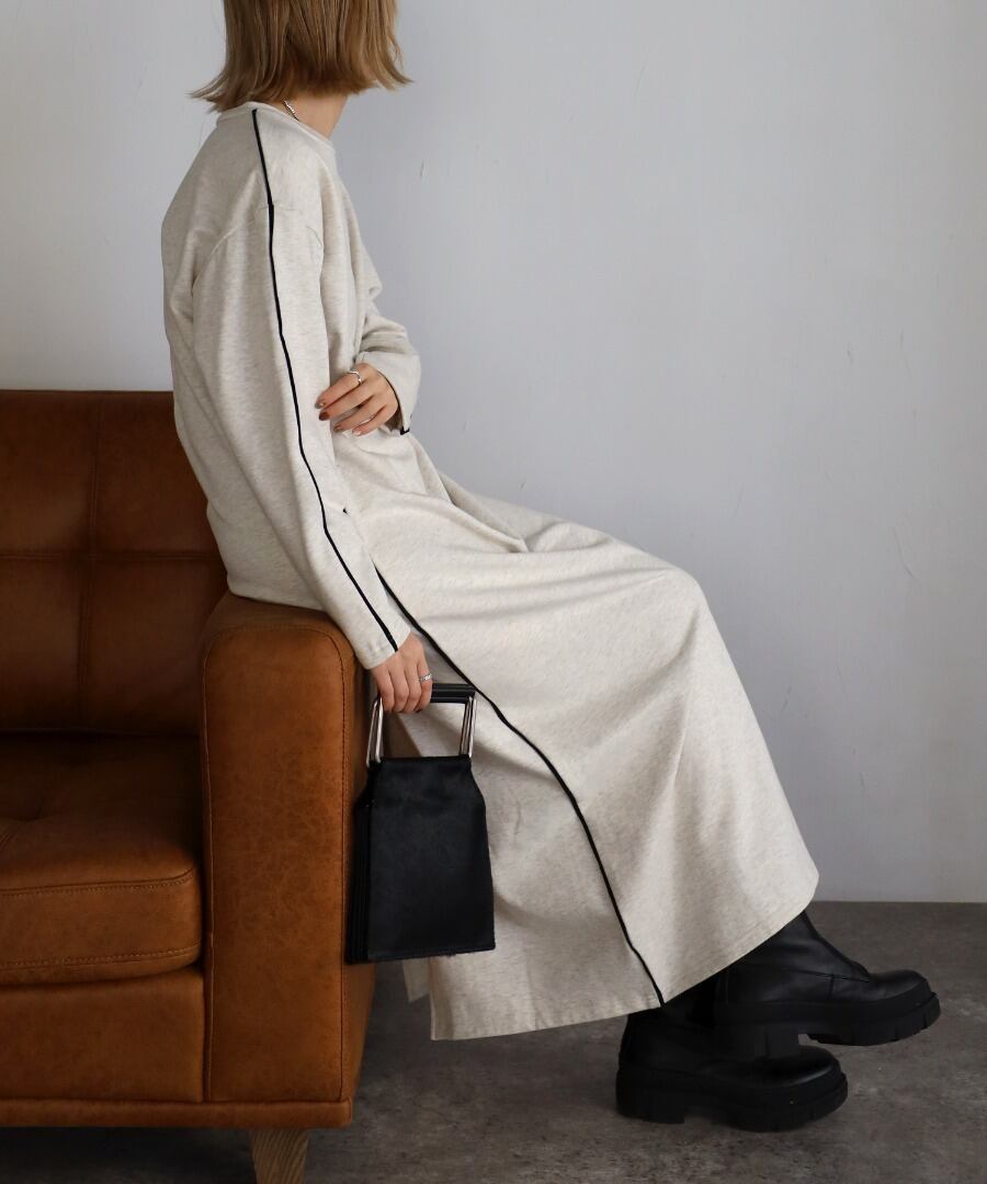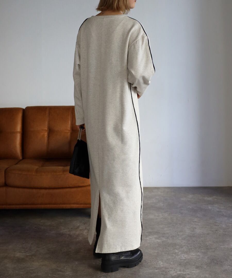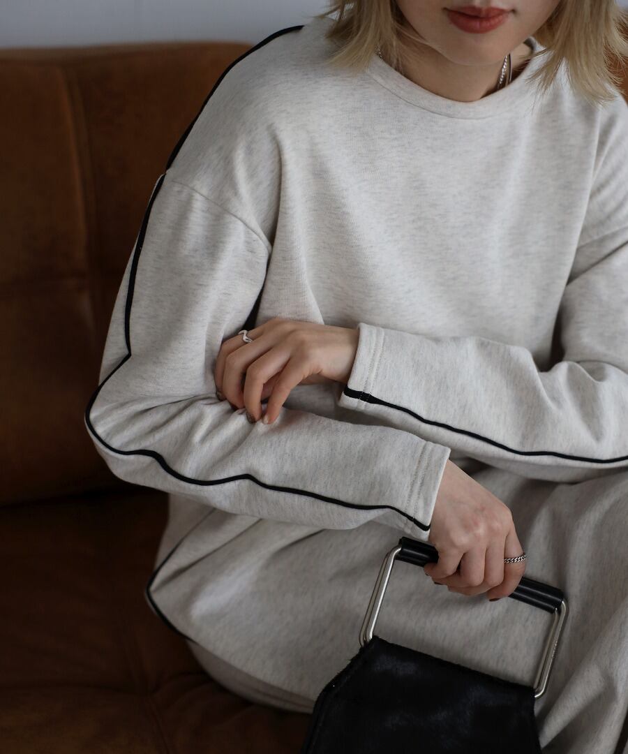 配色パイピングがアクセントのスウェットワンピース