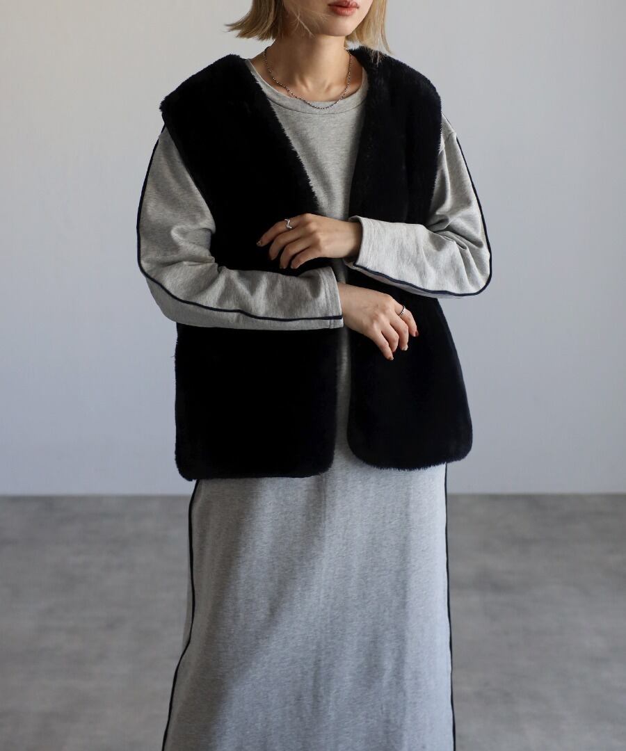 配色パイピングスウェットワンピース