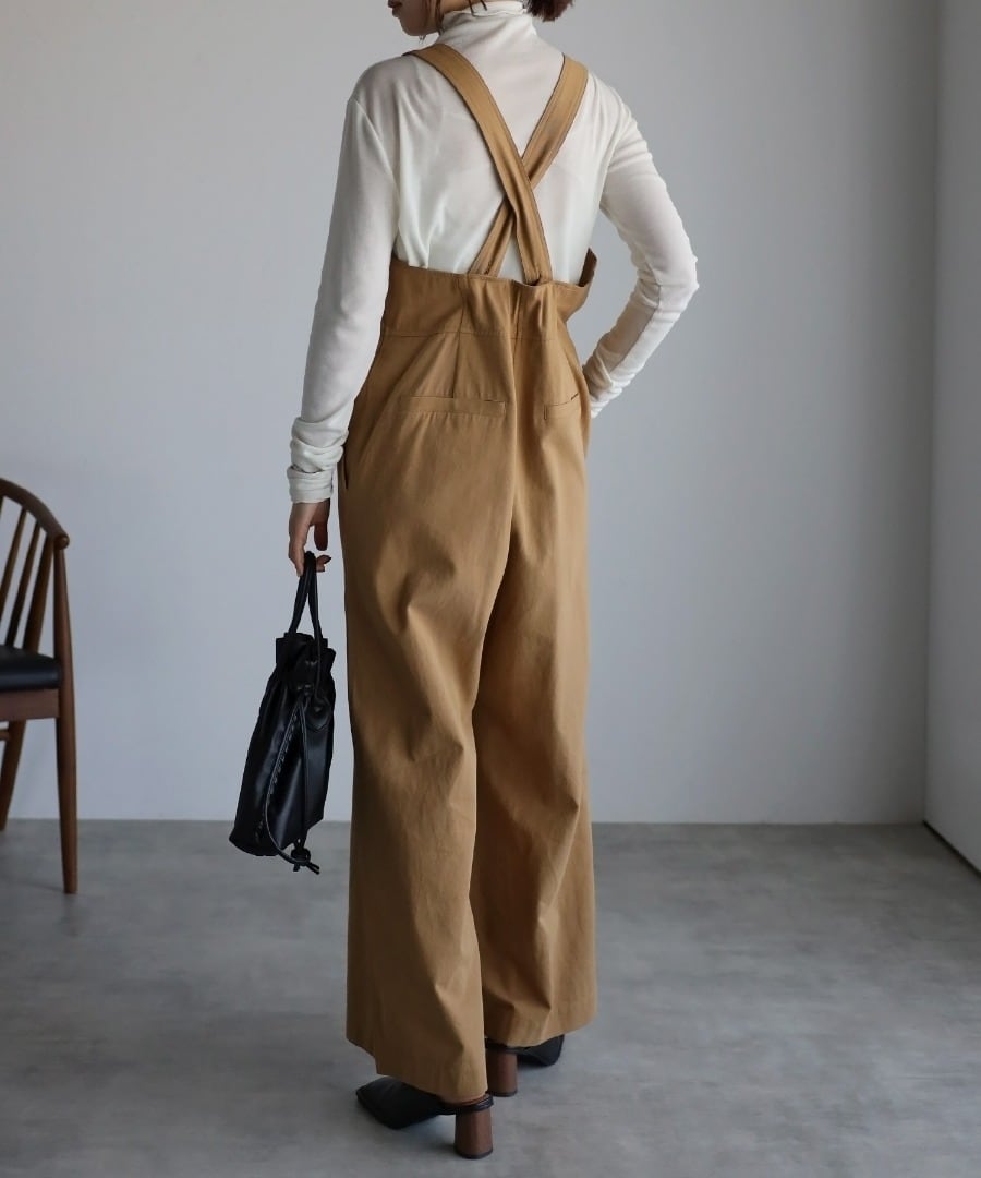 ハイウエストジップディテールサロペットパンツ