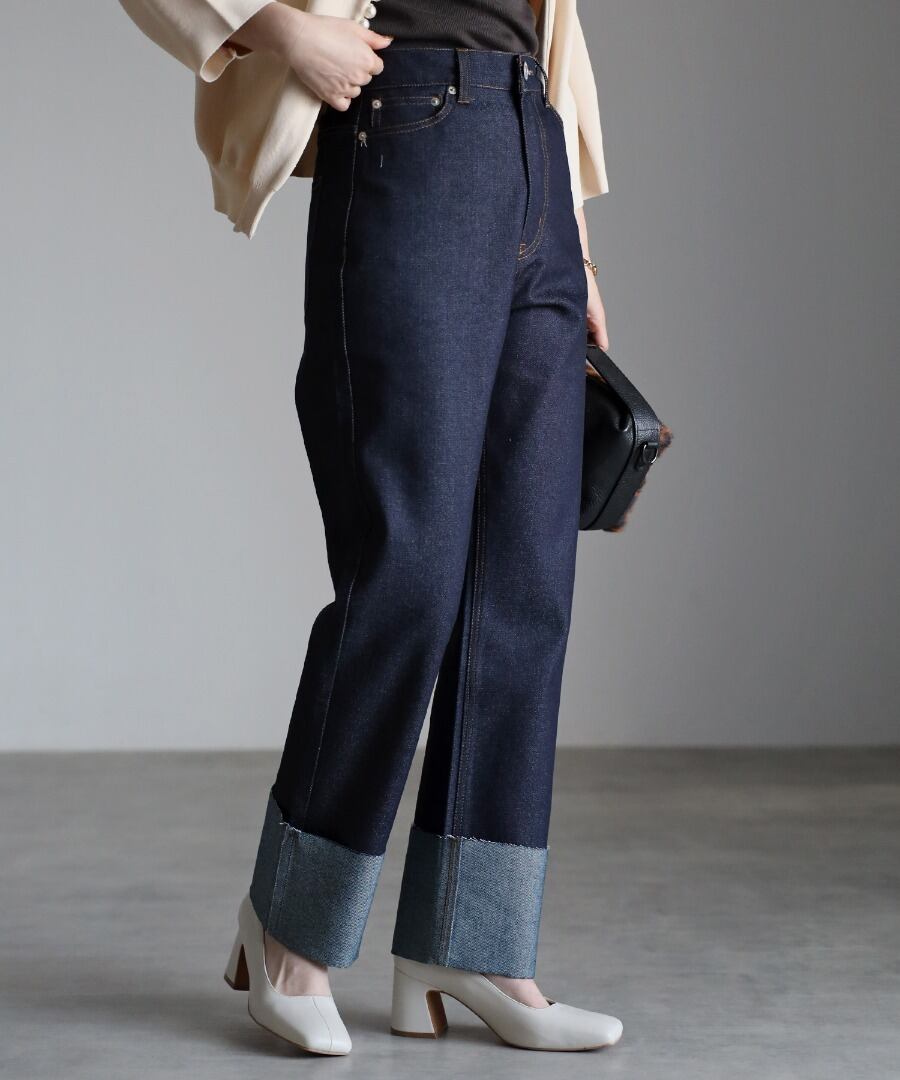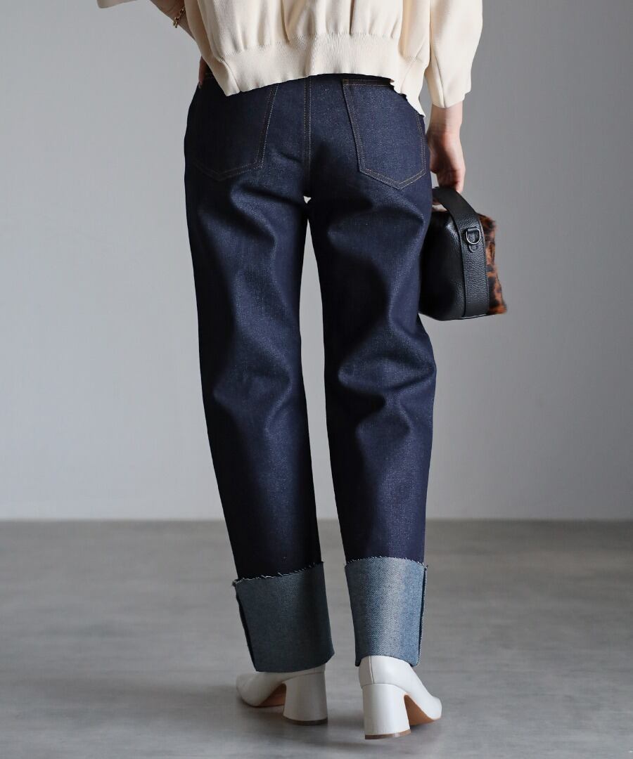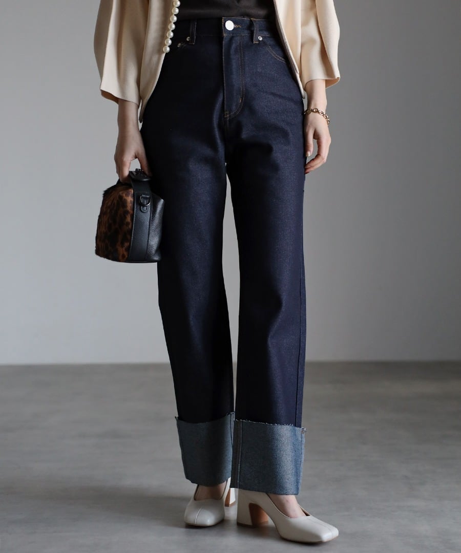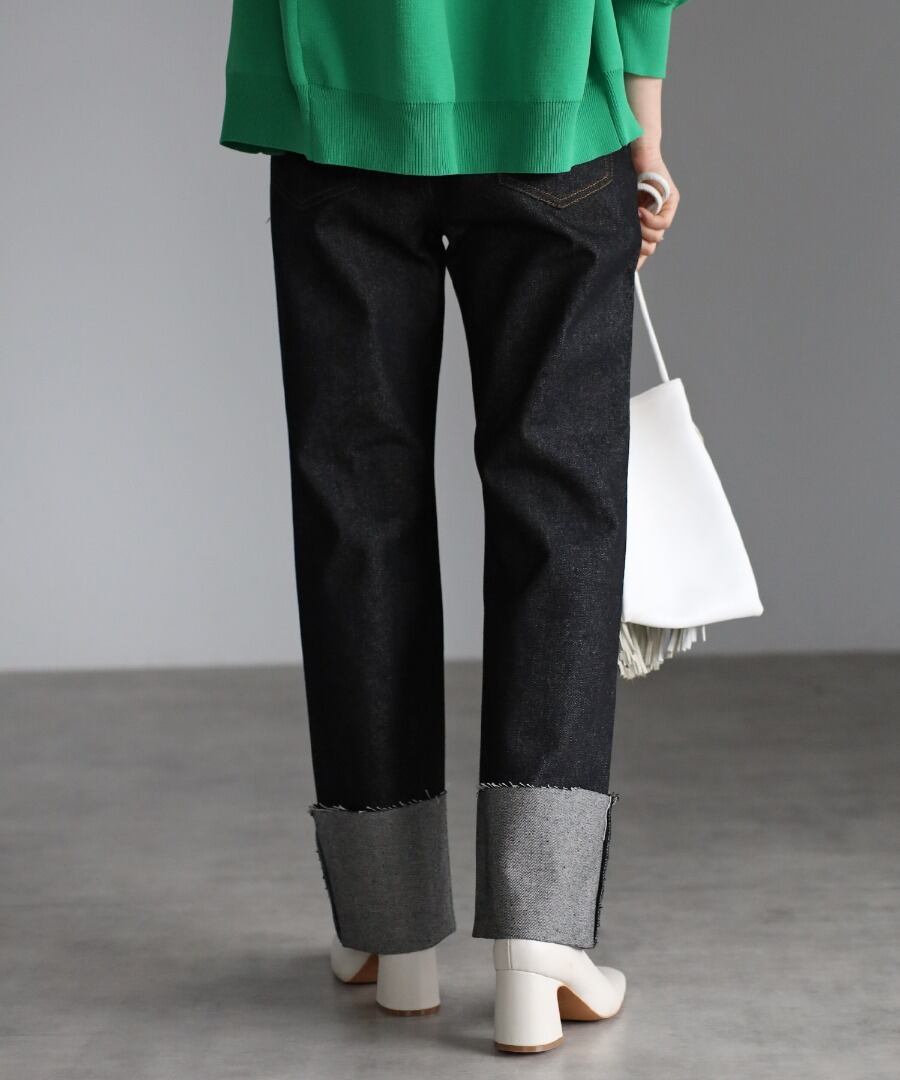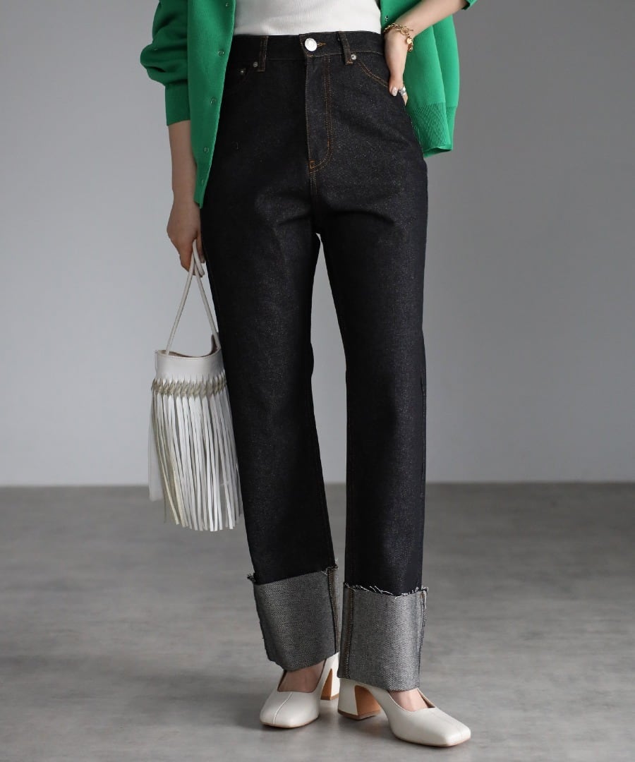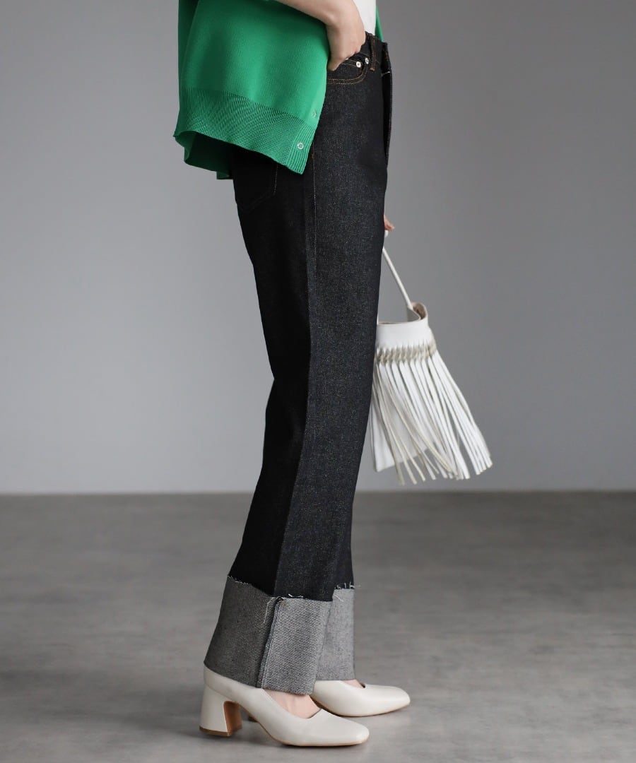 裾ロールアップデニムパンツ